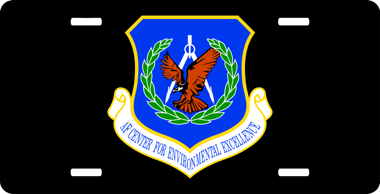 This U.S. Air Force Environmental Excellence Center License Plate is made from heavy gauge aluminum and has a baked enamel finish to last for many years of use. Each plate measures 5 15/16" x 11 15/16". This license plate would make a wonderful addition to your collection or a great gift.