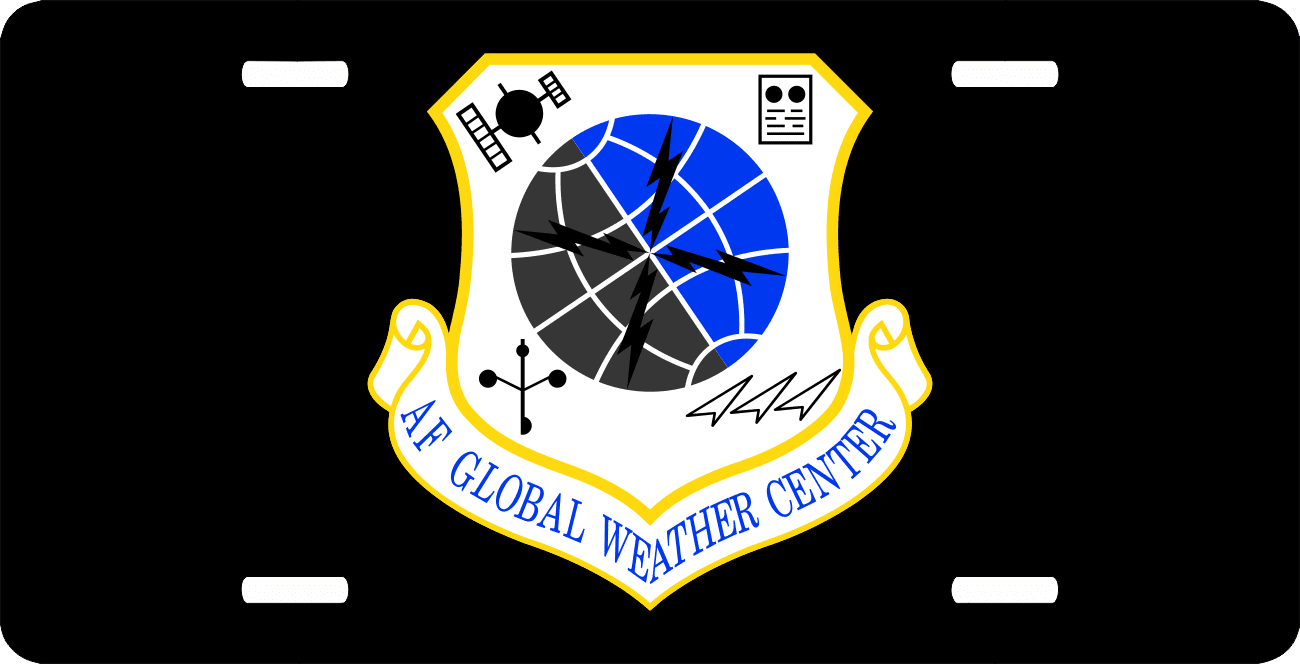 This U.S. Air Force Global Weather Center License Plate is made from heavy gauge aluminum and has a baked enamel finish to last for many years of use. Each plate measures 5 15/16" x 11 15/16". This license plate would make a wonderful addition to your collection or a great gift.