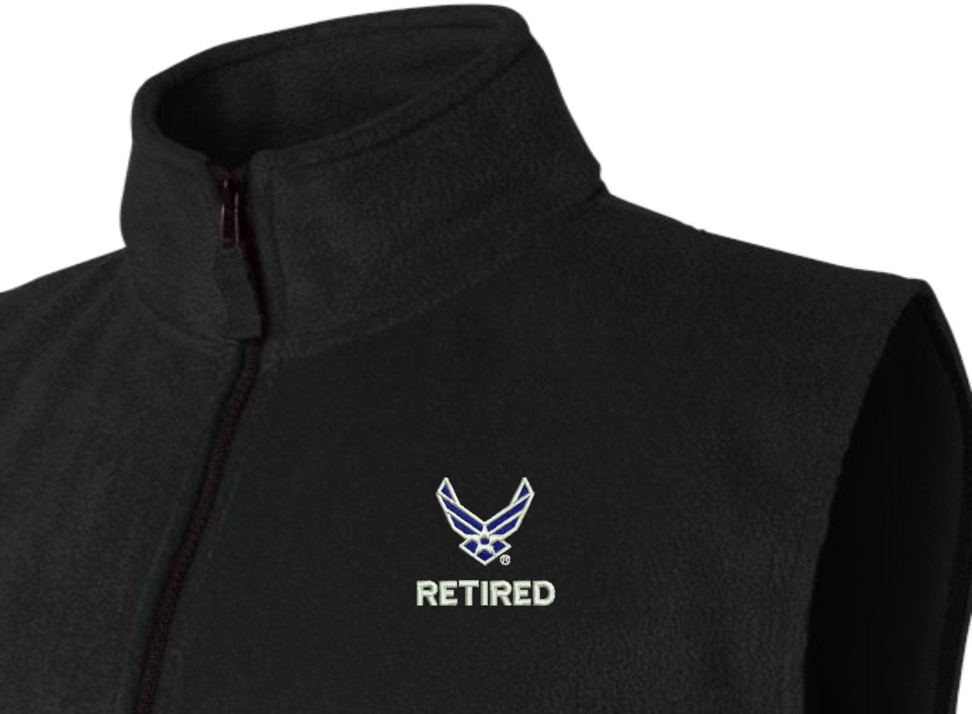 Due to supply chain disruptions, some colors and sizes may not be available in the same Brand, in these cases a brand of comparable quality will be used. Feel free to call in advance of your order, with questions you may have.MilitaryBest is expanding its line of Men's apparel with this quality U.S. Air Force Hap Arnold Wings Retired Full-Zip Fleece Vest. This U.S. Air Force Hap Arnold Wings Retired Full-Zip Fleece Vest features a convertible collar with dyed-to-match zipper pull, oversized nylon reinforced slash pockets, and an elastic hem. It is made using a 100% anti-pill polyester Fleece Vest. This U.S. Air Force Hap Arnold Wings Retired Full-Zip Fleece Vest will make an excellent addition to your wardrobe, or a quality gift. Your satisfaction is guaranteed! These Vests are custom embroidered at our facilities in Scottsboro, AL.