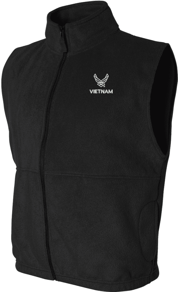 Due to supply chain disruptions, some colors and sizes may not be available in the same Brand, in these cases a brand of comparable quality will be used. Feel free to call in advance of your order, with questions you may have.MilitaryBest is expanding its line of Men's apparel with this quality U.S. Air Force Hap Arnold Wings Vietnam Full-Zip Fleece Vest. This U.S. Air Force Hap Arnold Wings Vietnam Full-Zip Fleece Vest features a convertible collar with dyed-to-match zipper pull, oversized nylon reinforced slash pockets, and an elastic hem. It is made using a 100% anti-pill polyester Fleece Vest. This U.S. Air Force Hap Arnold Wings Vietnam Full-Zip Fleece Vest will make an excellent addition to your wardrobe, or a quality gift. Your satisfaction is guaranteed! These Vests are custom embroidered at our facilities in Scottsboro, AL.