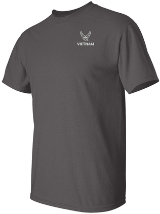 Note: Some of the Color Options pictured may not be available. Available Color Options are listed on the drop down menu above.MilitaryBest is expanding its line of apparel with this fine U.S. Air Force Hap Arnold Wings Vietnam T-Shirt. This Gildan brand short sleeve t-shirt is made using a 6 oz pre-shrunk 100% cotton material. This U.S. Air Force Hap Arnold Wings Vietnam T-Shirt will make an excellent addition to your wardrobe or a fine gift. This U.S. Air Force Hap Arnold Wings Vietnam T-Shirt is custom embroidered at our facilities in Scottsboro, AL when you place your order.