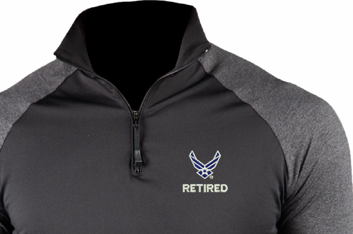 Striving to provide you with the highest quality apparel made in the United States, MilitaryBest is proud to offer this U.S. Air Force HAP Wings Retired ProWikMax® 2-Tone 1/4 Zip Knit Long Sleeve Shirt. Manufactured by WSI Sportswear in Minnesota and Embroidered by us here at MilitaryBest in Alabama; this shirt is 100% Made in the USA! We aim to provide you with soft, comfortable, dry-fit, American-made clothing that allows you to be your best. ProWikMax® is 92% Polyester, 8% Spandex, and made to be both durable and flattering.*For washing we recommend machine wash cold with like colors, and line dry.PRODUCT FEATURES