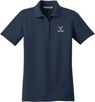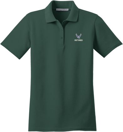 MilitaryBest is proud to offer this U.S. Air Force HAP Wings Retired Women's Stain-Release Polo. This polo is embroidered by our MilitaryBest team in Northeast Alabama. These polos are made with a stain-release finish for long-lasting wear, odor-fighting properties, and superior wrinkle and shrink resistance.Care Instructions: Machine Wash Cold With Like Colors. Do Not Use Fabric Softener. Do Not Bleach. Tumble Dry Low. Warm Iron If Necessary.