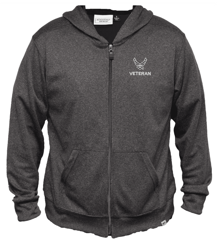 MilitaryBest proudly offers this top-quality U.S. Air Force Hap Arnold Wings Veteran Men's 100% Polyester Heather Grey Full-Zip Hoodie. We have proudly partnered with Authentically American to offer you this Made in the USA Hoodie. Water & wrinkle resistance make this zip hoodie the perfect layering piece from the golf course to you favorite travel destination.As with all MilitaryBest items, our designs are Officially Licensed. A percentage of the sale of each MilitaryBest item is forwarded to the licensing department in support of it's MWR (Morale, Welfare, & Recreation) program. These payments are made by either ALL4U LLC or the wholesaler from where the item originated. Our team thanks you for your service and your support of these programs.