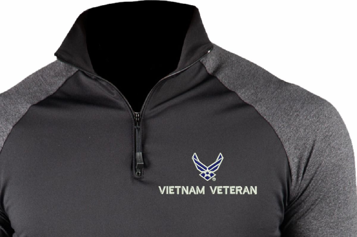 Striving to provide you with the highest quality apparel made in the United States, MilitaryBest is proud to offer this U.S. Air Force HAP Wings Vietnam Veteran ProWikMax 2-Tone 1/4 Zip Knit Long Sleeve Shirt. Manufactured by WSI Sportswear in Minnesota and Embroidered by us here at MilitaryBest in Alabama; this shirt is 100% Made in the USA! We aim to provide you with soft, comfortable, dry-fit, American-made clothing that allows you to be your best. ProWikMax is 92% Polyester, 8% Spandex, and made to be both durable and flattering.*For washing we recommend machine wash cold with like colors, and line dry.PRODUCT FEATURES