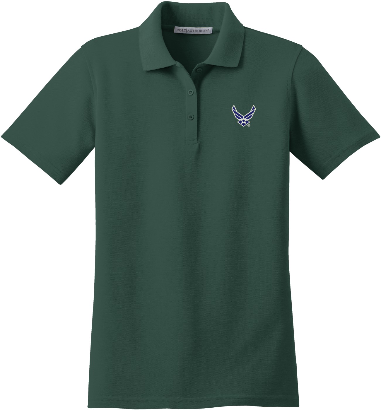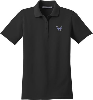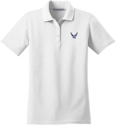 MilitaryBest is proud to offer this U.S. Air Force HAP Wings Women's Stain-Release Polo. This polo is embroidered by our MilitaryBest team in Northeast Alabama. These polos are made with a stain-release finish for long-lasting wear, odor-fighting properties, and superior wrinkle and shrink resistance.Care Instructions: Machine Wash Cold With Like Colors. Do Not Use Fabric Softener. Do Not Bleach. Tumble Dry Low. Warm Iron If Necessary.
