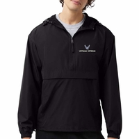 MilitaryBest is proud to offer this quality U.S. Air Force Iraq Veteran Hooded Windbreaker. Also known as an Anorak Jacket, this windbreaker is designed to keep wind and water out. With a design embroidered over the left chest, this windbreaker is embroidered to order at our facilities in Scottsboro, AL.. This windbreaker can be packed into the mesh lined pouch pocket for a more portable method of storage.- 100% Polyester