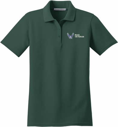 MilitaryBest is proud to offer this U.S. Air Force Iraq Veteran Women's Stain-Release Polo. This polo is embroidered by our MilitaryBest team in Northeast Alabama. These polos are made with a stain-release finish for long-lasting wear, odor-fighting properties, and superior wrinkle and shrink resistance.Care Instructions: Machine Wash Cold With Like Colors. Do Not Use Fabric Softener. Do Not Bleach. Tumble Dry Low. Warm Iron If Necessary.