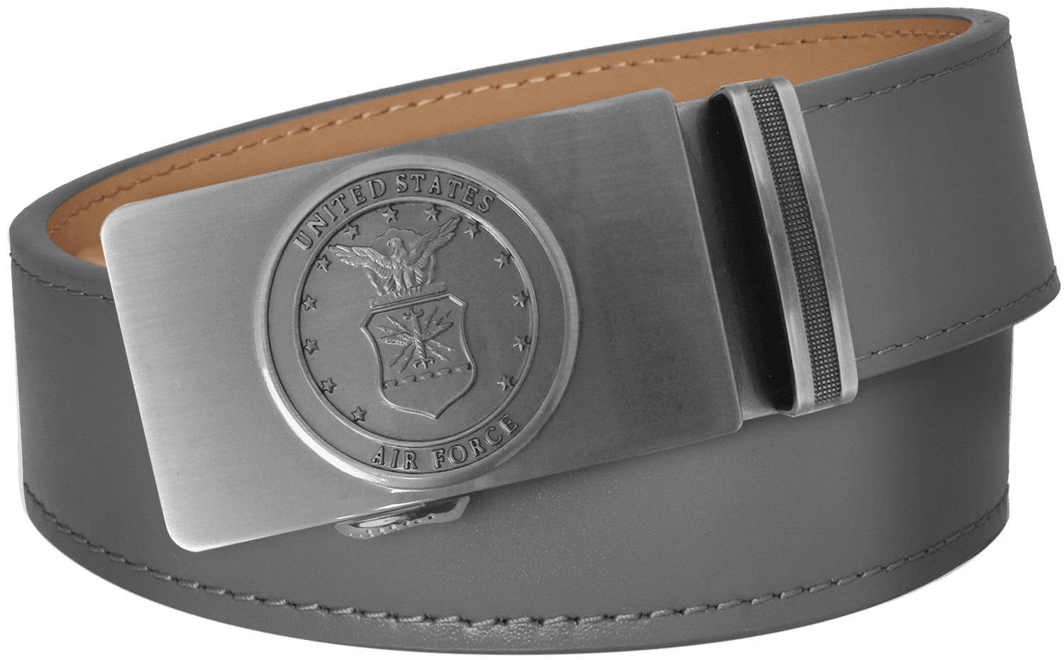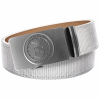 MilitaryBest has partnered with PA Belts to offer this officially Licensed U.S. Air Force Grey Full Grain Leather Slide Belt. This wonderfully detailed U.S. Air Force Seal belt and buckle is a perfect way to show your pride or to give as a gift to a deserving veteran or active duty service member. This belt and fine Air Force Buckle comes in a beautiful 4mm square or round acrylic box with the Official U.S. Air Force hologram as your proof of authenticity. One size fits all, simply cut the belt to fit. No more annoying holes, simply slide the belt, listen to the clicks and enhance your fashion. Easy to put on, to wear and to take off. Instructions included.