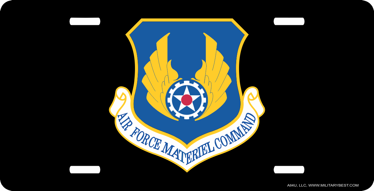 This U.S. Air Force Materiel Command License Plate is made from heavy gauge aluminum and has a baked enamel finish to last for many years of use. Each plate measures 5 15/16" x 11 15/16". This license plate would make a wonderful addition to your collection or a great gift.