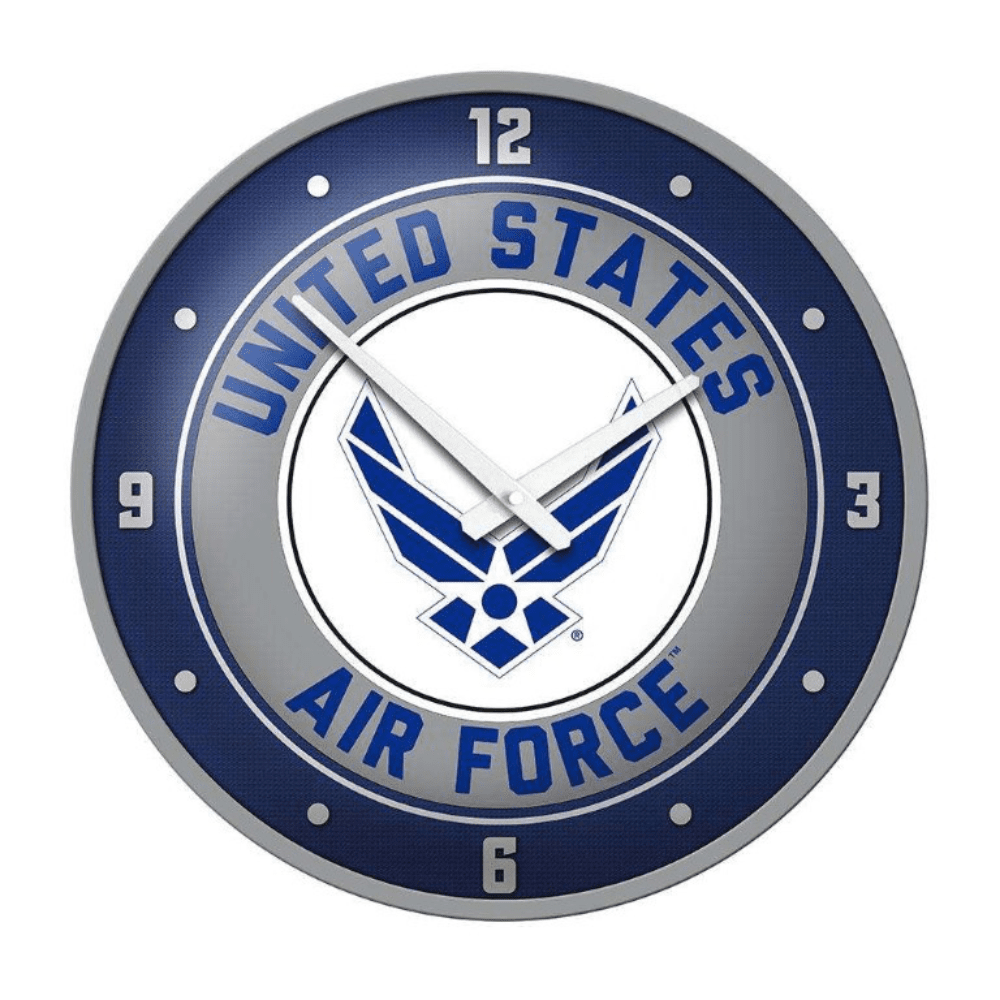 Our simple and modern United States Air Force wall clock will add color and appeal to any room you choose to hang it in. It features an injection molded frame with a high-resolution, digitally printed, face that prominently displays their team logo. It also features a quartz clock movement to add an extra element of functionality. This is the perfect clock for any room of the home, office, or dorm room to show your pride for the Air Force. This is an officially licensed product of the US Air Force and made in the USA.FEATURES