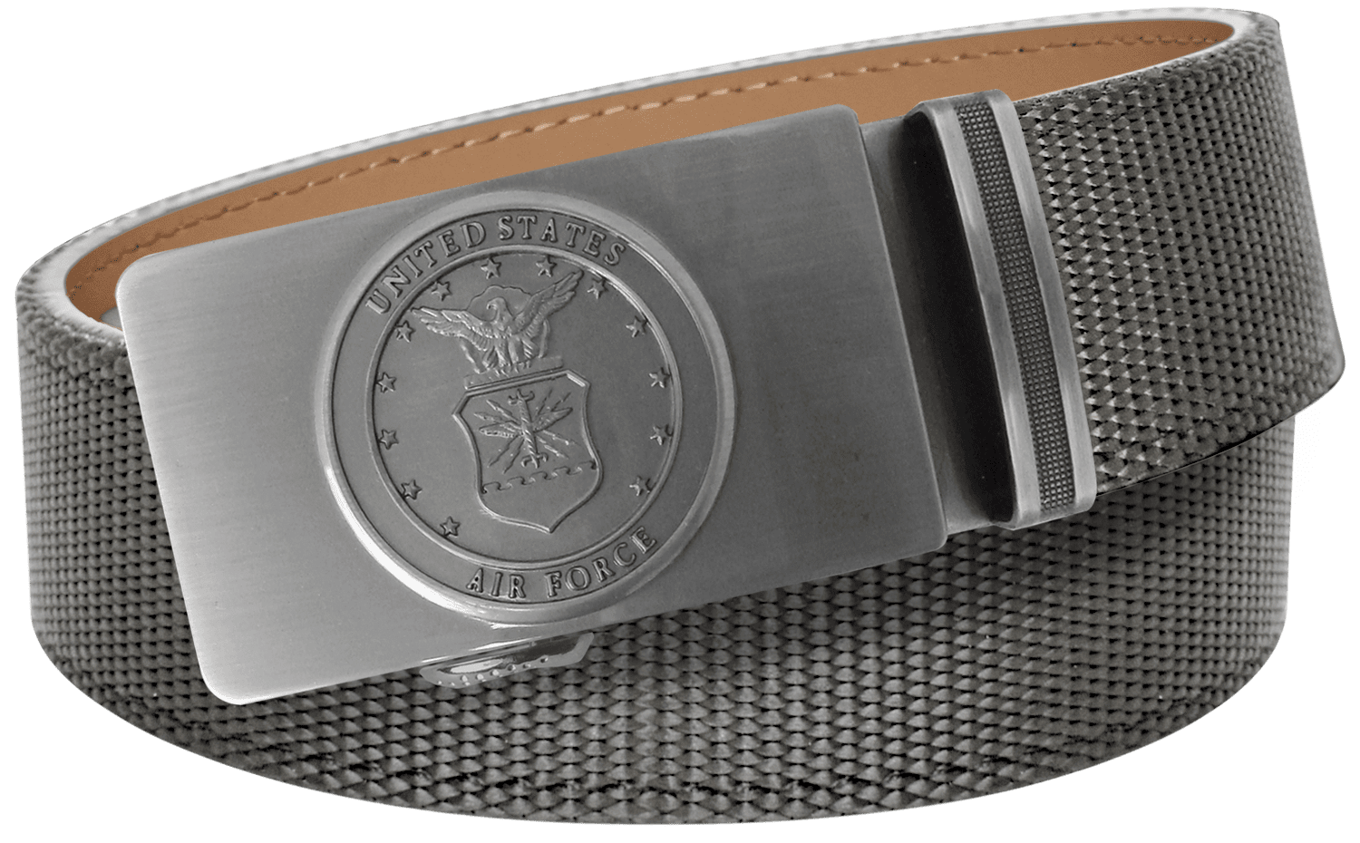 MilitaryBest has partnered with PA Belts to offer this officially Licensed U.S. Air Force Grey Nylon Weave Slide Belt. This wonderfully detailed U.S. Air Force Seal belt and buckle is a perfect way to show your pride or to give as a gift to a deserving veteran or active duty service member. This belt and fine Air Force Buckle comes in a beautiful 4mm square or round acrylic box with the Official U.S. Air Force hologram as your proof of authenticity. One size fits all, simply cut the belt to fit. No more annoying holes, simply slide the belt, listen to the clicks and enhance your fashion. Easy to put on, to wear and to take off. Instructions included.