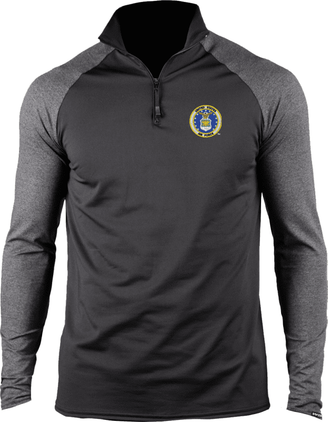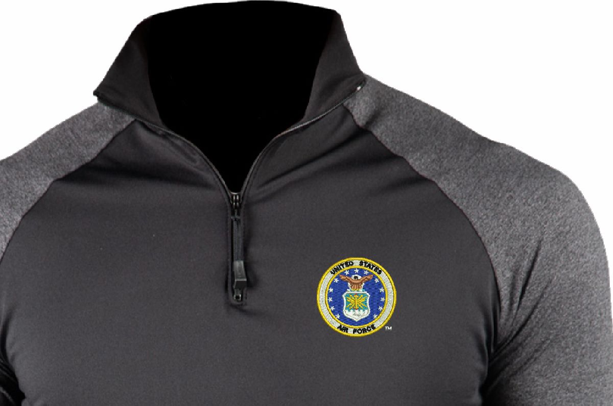 Striving to provide you with the highest quality apparel made in the United States, MilitaryBest is proud to offer this U.S. Air Force Seal ProWikMax® 2-Tone 1/4 Zip Knit Long Sleeve Shirt. Manufactured by WSI Sportswear in Minnesota and Embroidered by us here at MilitaryBest in Alabama; this shirt is 100% Made in the USA! We aim to provide you with soft, comfortable, dry-fit, American-made clothing that allows you to be your best. ProWikMax® is 92% Polyester, 8% Spandex, and made to be both durable and flattering.*For washing we recommend machine wash cold with like colors, and line dry.PRODUCT FEATURES