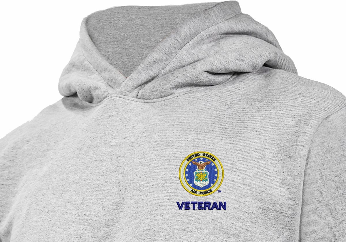 Striving to provide you with the highest quality apparel made in the United States, MilitaryBest is proud to offer this U.S. Air Force Seal Veteran Heavy Weight Fleece Hoodie. Manufactured by WSI Sportswear in Minnesota and Embroidered by us here at MilitaryBest in Alabama; this fleece hoodie is 100% Made in the USA! We aim to provide you with soft, comfortable, dry-fit, American-made clothing that allows you to be your best.*For washing we recommend machine wash cold with like colors, and line dry.PRODUCT FEATURES