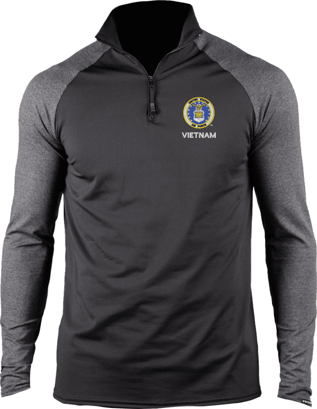 Striving to provide you with the highest quality apparel made in the United States, MilitaryBest is proud to offer this U.S. Air Force Seal Vietnam ProWikMax 2-Tone 1/4 Zip Knit Long Sleeve Shirt. Manufactured by WSI Sportswear in Minnesota and Embroidered by us here at MilitaryBest in Alabama; this shirt is 100% Made in the USA! We aim to provide you with soft, comfortable, dry-fit, American-made clothing that allows you to be your best. ProWikMax is 92% Polyester, 8% Spandex, and made to be both durable and flattering.*For washing we recommend machine wash cold with like colors, and line dry.PRODUCT FEATURES