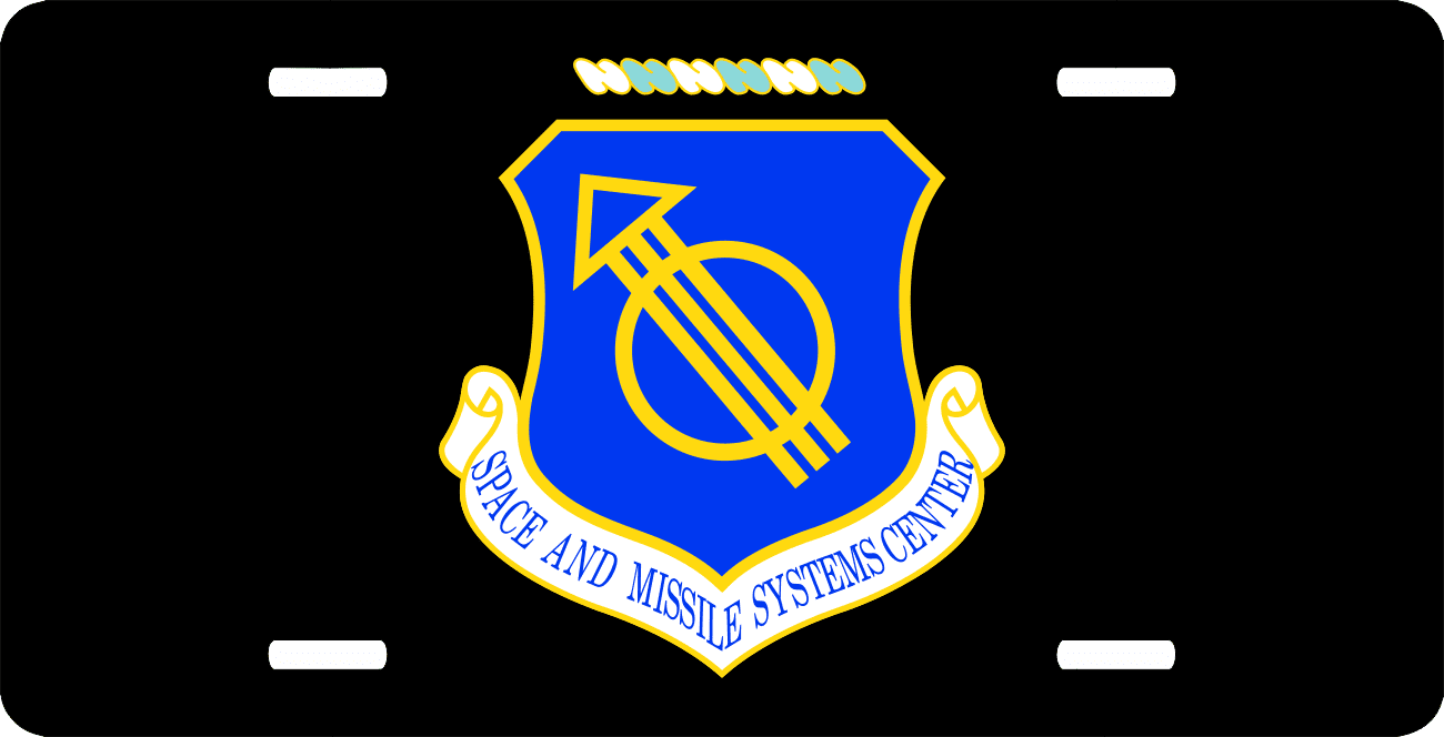 This U.S. Air Force Space And Missile Systems Center License Plate is made from heavy gauge aluminum and has a baked enamel finish to last for many years of use. Each plate measures 5 15/16" x 11 15/16". This license plate would make a wonderful addition to your collection or a great gift.