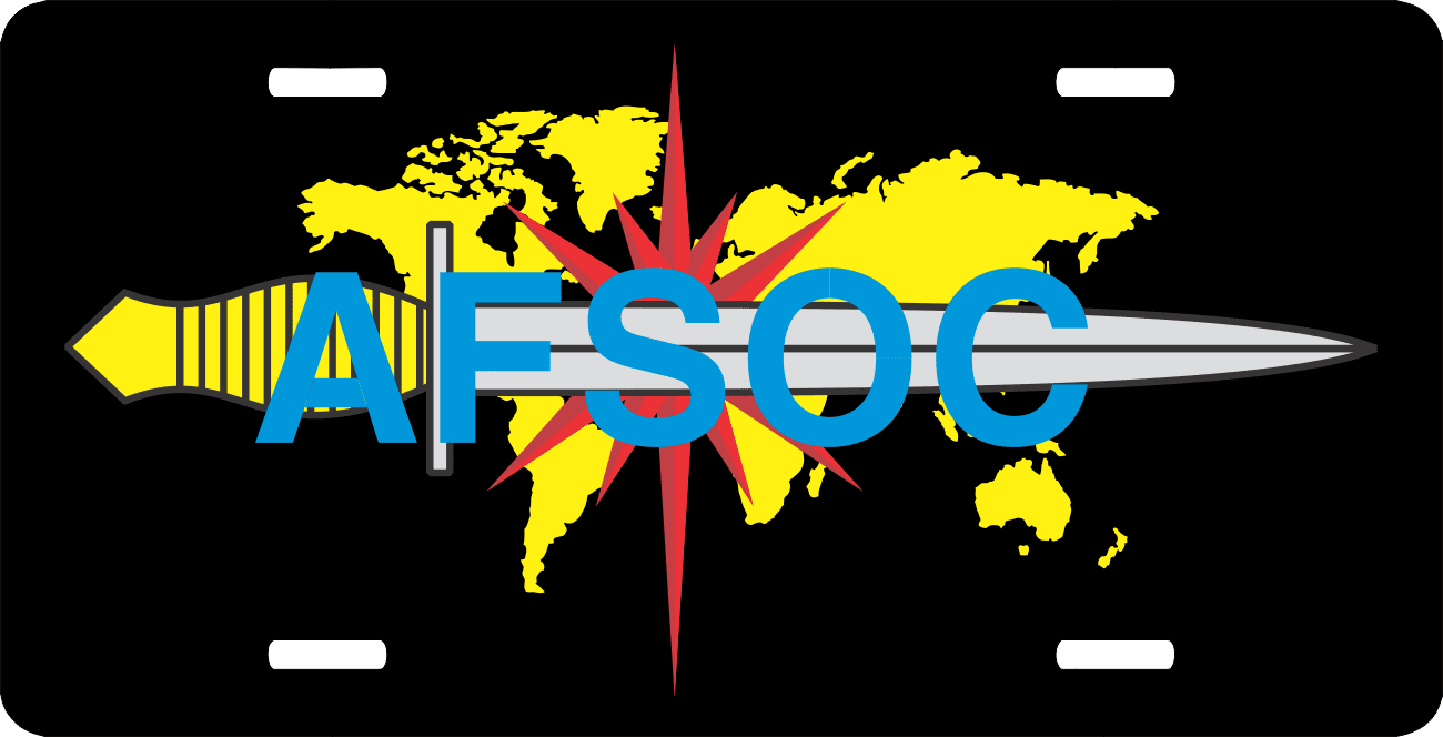 This U.S. Air Force Special Operations Command Logo License Plate is made from heavy gauge aluminum and has a baked enamel finish to last for many years of use. Each plate measures 5 15/16" x 11 15/16". This license plate would make a wonderful addition to your collection or a great gift.