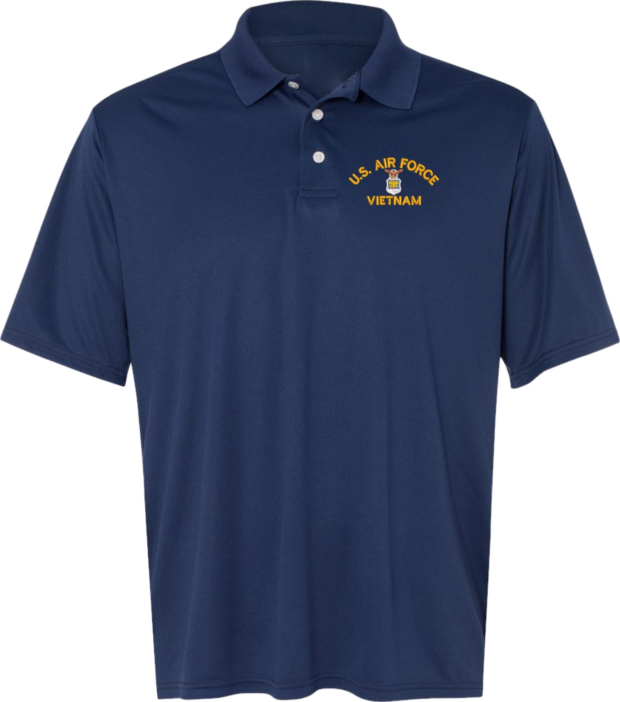 This U.S. Air Force Vietnam Navy Blue Moisture Wicking Polo Large is an overstock item and is only available for the value price while supplies last. Clearance Items are not eligible for Refunds or Returns,A percentage of the sale of each MilitaryBest item is forwarded to the licensing departments of each respective branch of service in support of the MWR (Morale, Welfare, & Recreation) program. These payments are made by either ALL4U LLC or the wholesaler from where the item originated. Our team thanks you for your service and your support of these programs.