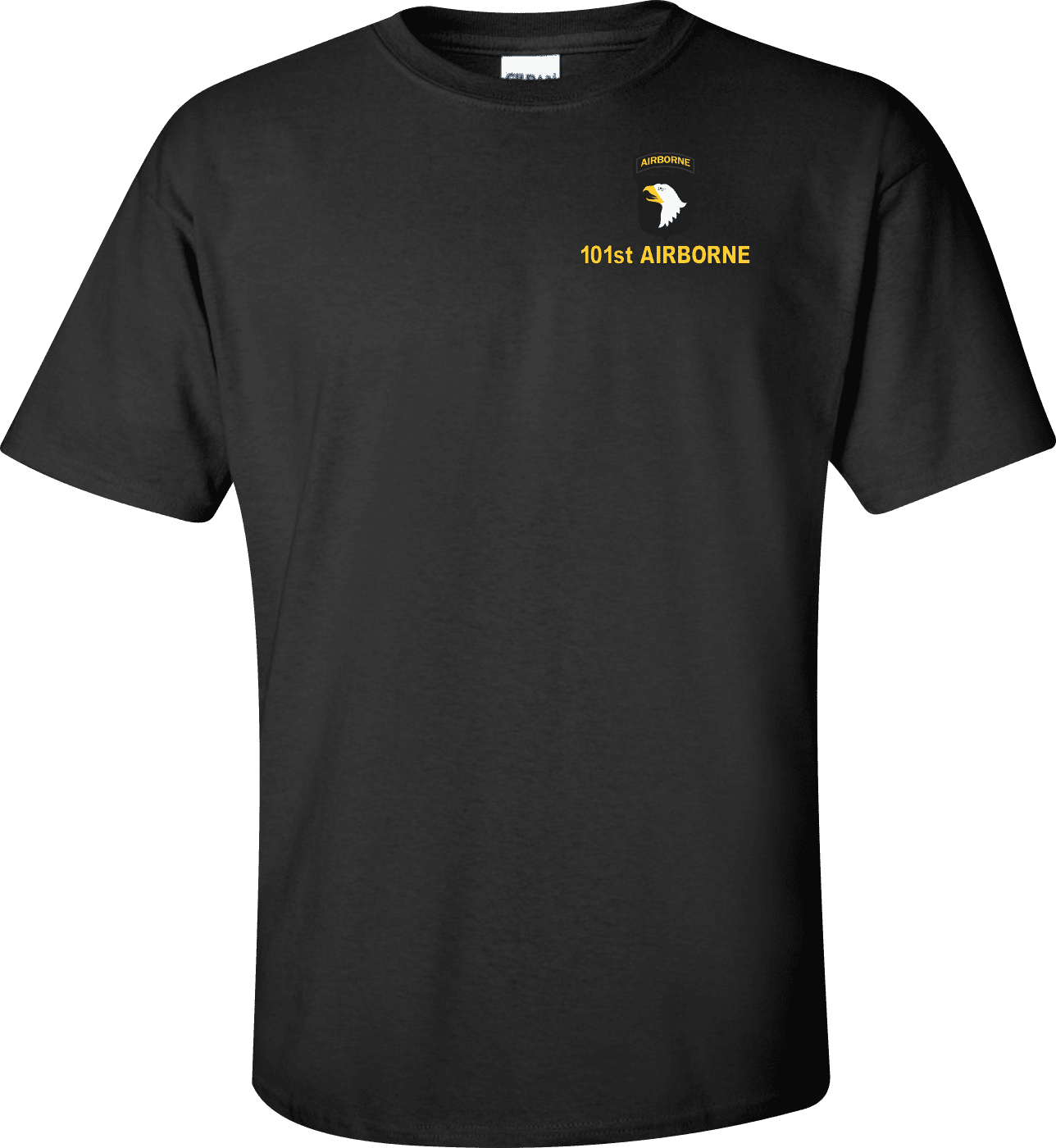 MilitaryBest is proud to offer this fine U.S. Army 101st Airborne Division T-shirt. This shirt is available with several options for the image on the front of the shirt, as well as, offering a full-sized Insignia on the back. Each U.S. Army 101st Airborne Division T-shirt is proudly printed in the USA.Unless there is a defect in workmanship or material, these shirts are unreturnable.