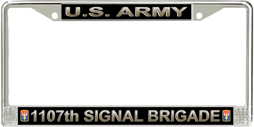 U.S. Army 1107th Signal Brigade License Plate FrameThis U.S. Army 1107th Signal Brigade License Plate Frame is made from the highest quality finished metal alloy. Each one is designed to provide years of use. Each is designed and produced in