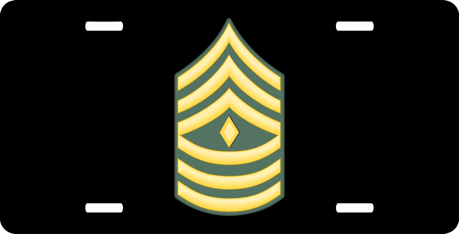 This U.S. Army 1st Sergeant License Plate is made from heavy gauge aluminum and has a baked enamel finish to last for many years of use. Each plate measures 5 15/16" x 11 15/16". This license plate would make a wonderful addition to your collection or a great gift.