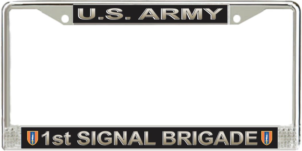 U.S. Army 1st Signal Brigade License Plate FrameThis U.S. Army 1st Signal Brigade License Plate Frame is made from the highest quality finished metal alloy. Each one is designed to provide years of use. Each is designed and produced in our facility in Scottsboro, Alabama.