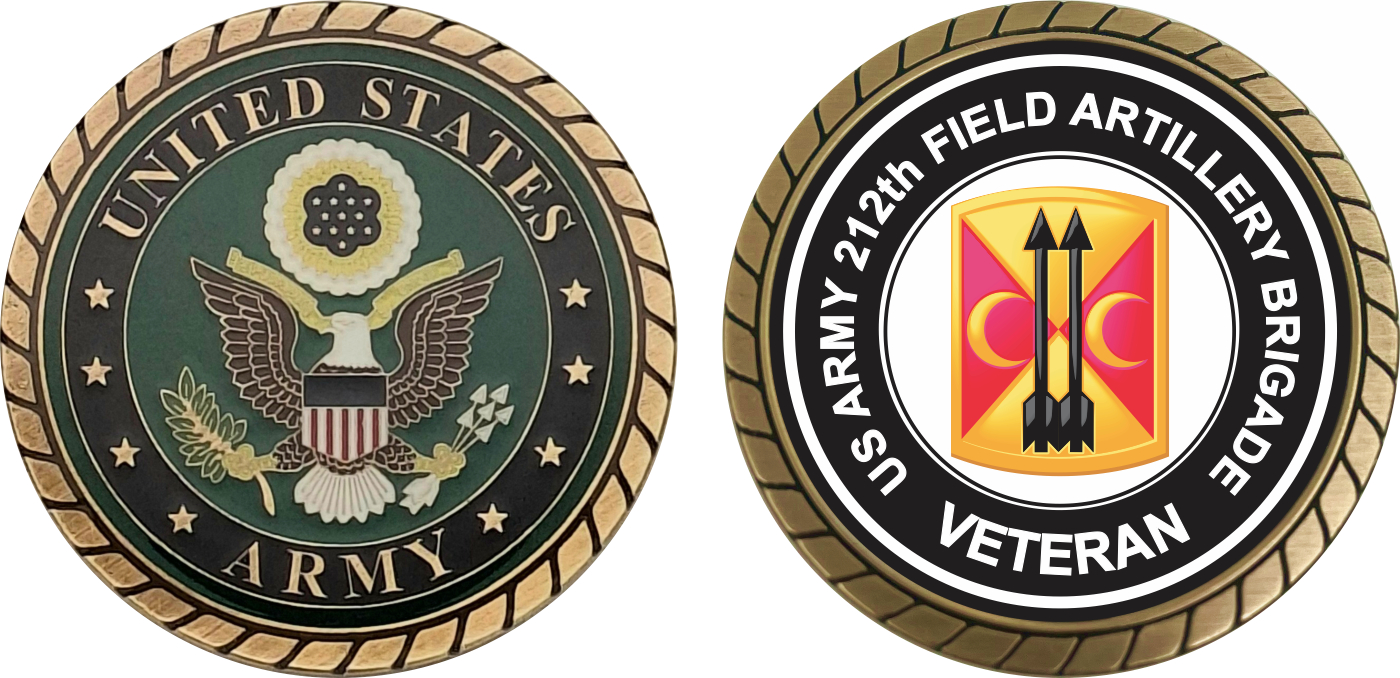 This 1 3/4” U.S. Army 212th Field Artillery Brigade Veteran Challenge Coin is proudly offered by MilitaryBest. This Officially Licensed Army coin has beautiful enamel finish on one side and an organized crisp clean U.S. Army 212th Field Artillery Brigade Veteran design on the opposite side.