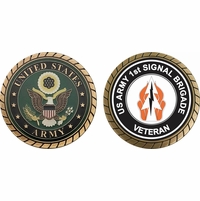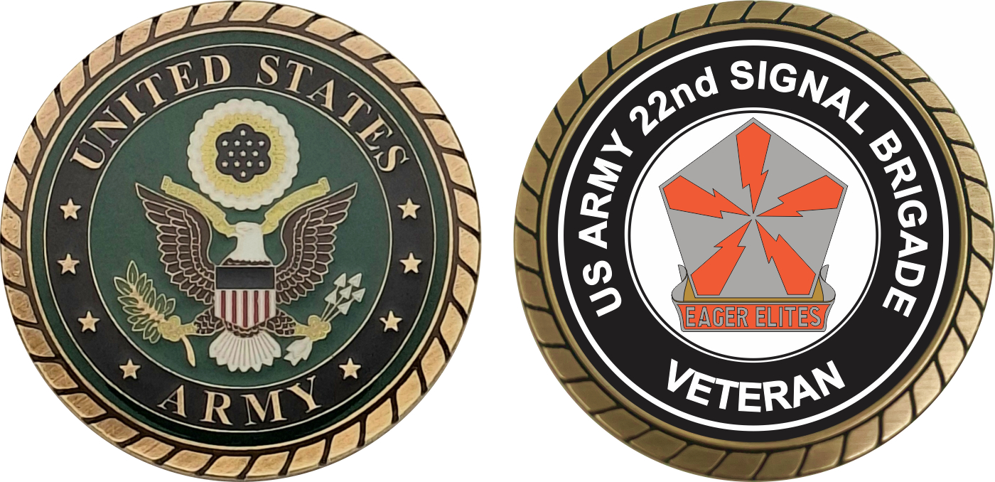 This 1 3/4” U.S. Army 22nd Signal Brigade Unit Crest Veteran Challenge Coin is proudly offered by MilitaryBest. This Officially Licensed Army coin has beautiful enamel finish on one side and an organized crisp clean U.S. Army 22nd Signal Brigade Unit Crest Veteran design on the opposite side.