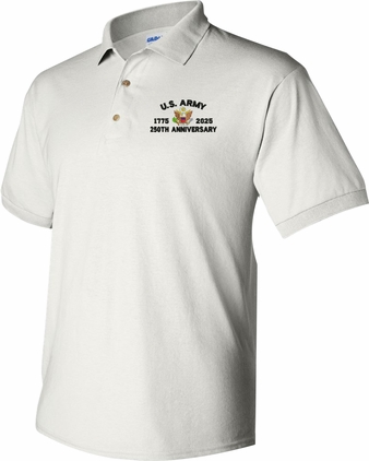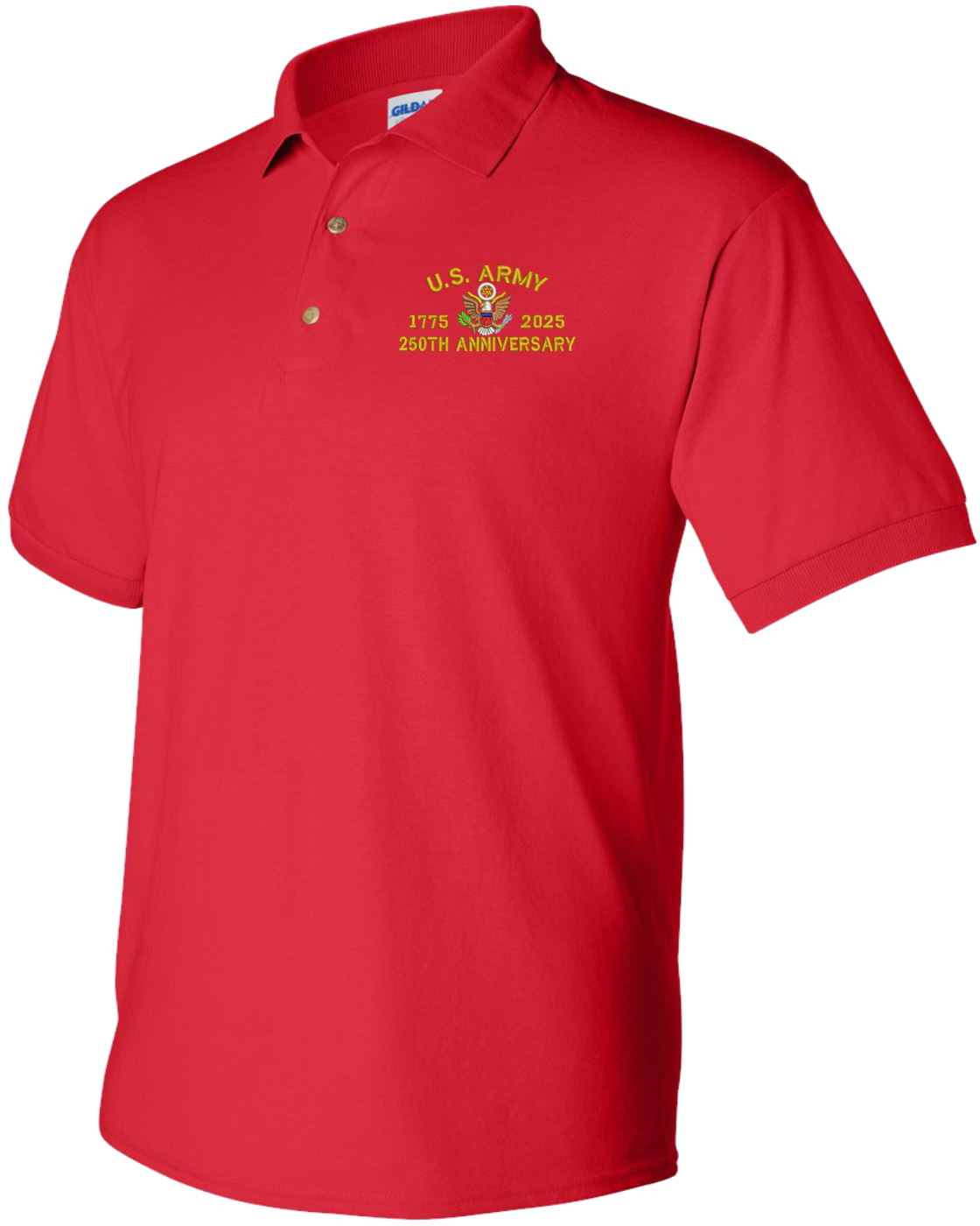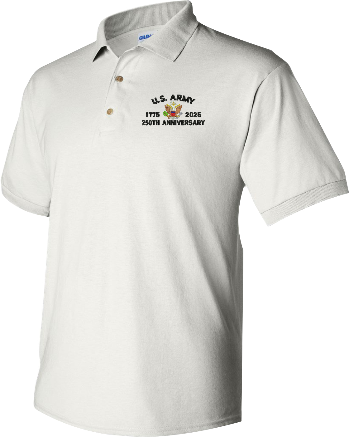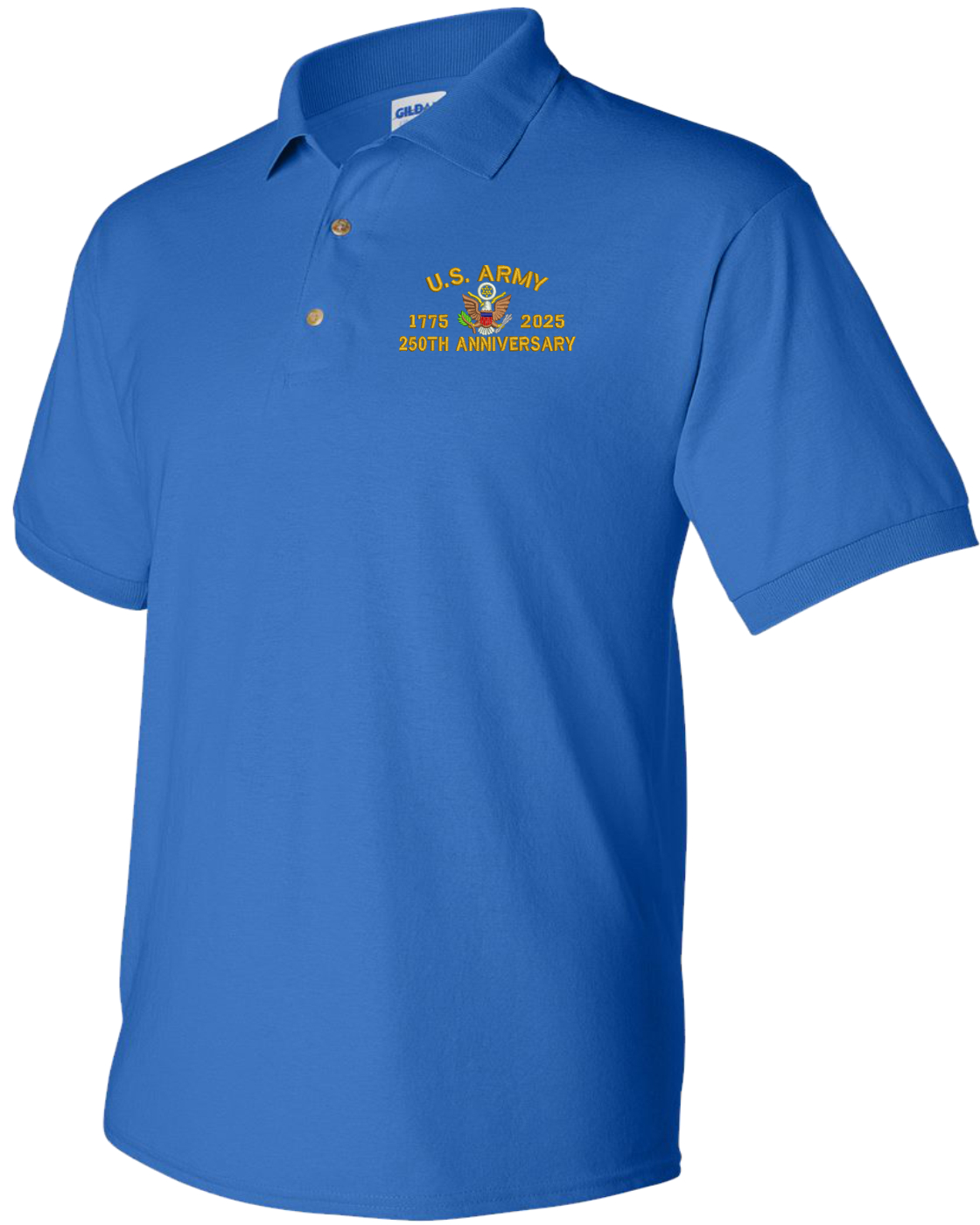 MilitaryBest is proud to offer this quality U.S. Army 250th Anniversary Embroidered Polo. Each Polo is available in either 100% Ringspun cotton pique or a 50/50 cotton/polyester blend. These quality Military Polos are proudly embroidered at our facilities in Scottsboro, AL. Support the Army MWR program by purchasing only from Licensed Vendors.