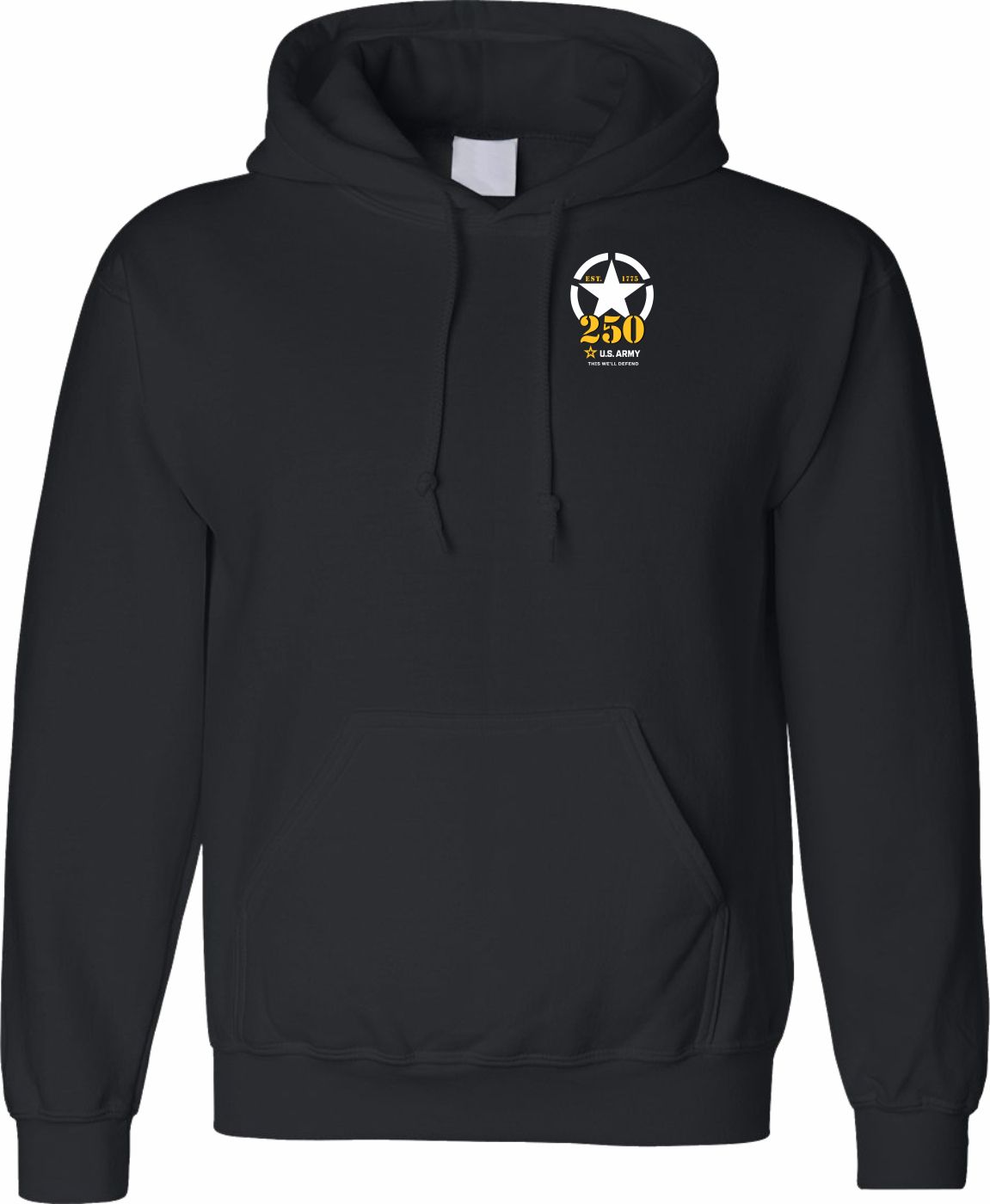 MilitaryBest is proud to offer this fine U.S. Army 250th Anniversary Printed Hoodie. The design is printed directly on the shirt selected. This shirt is available with several options for the image on the front of the shirt, such as a smaller design in the top left or a full size design across the entire chest. Each shirt is proudly printed in the USA.Unless there is a defect in workmanship or material, these shirts are unreturnable.