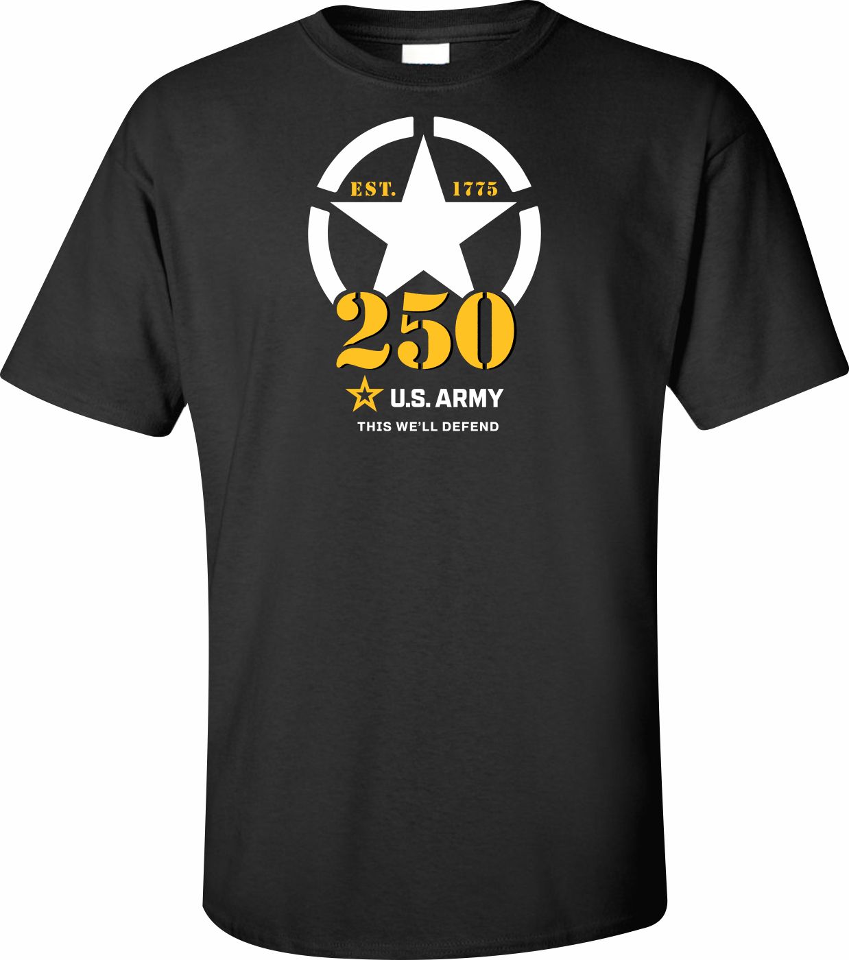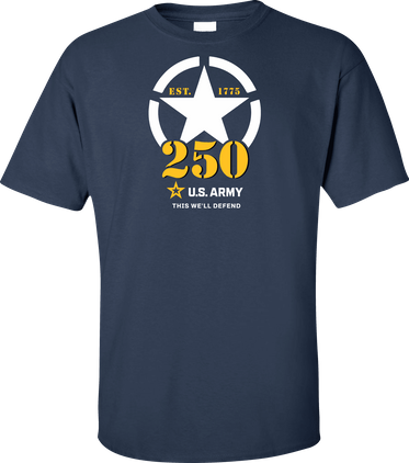 MilitaryBest is proud to offer this fine U.S. Army 250th Anniversary Printed T-Shirt. This shirt is available with several options for the image on the front of the shirt, as well as, offering a full-sized Insignia on the back. Each T-shirt is proudly printed in the USA.Unless there is a defect in workmanship or material, these shirts are unreturnable.