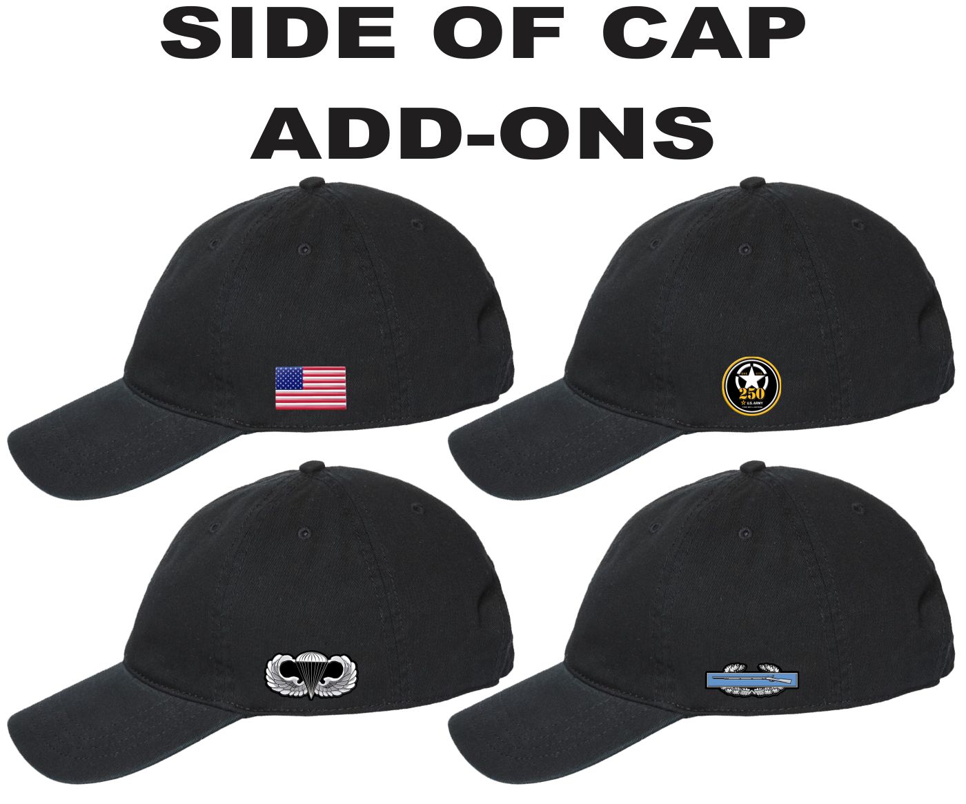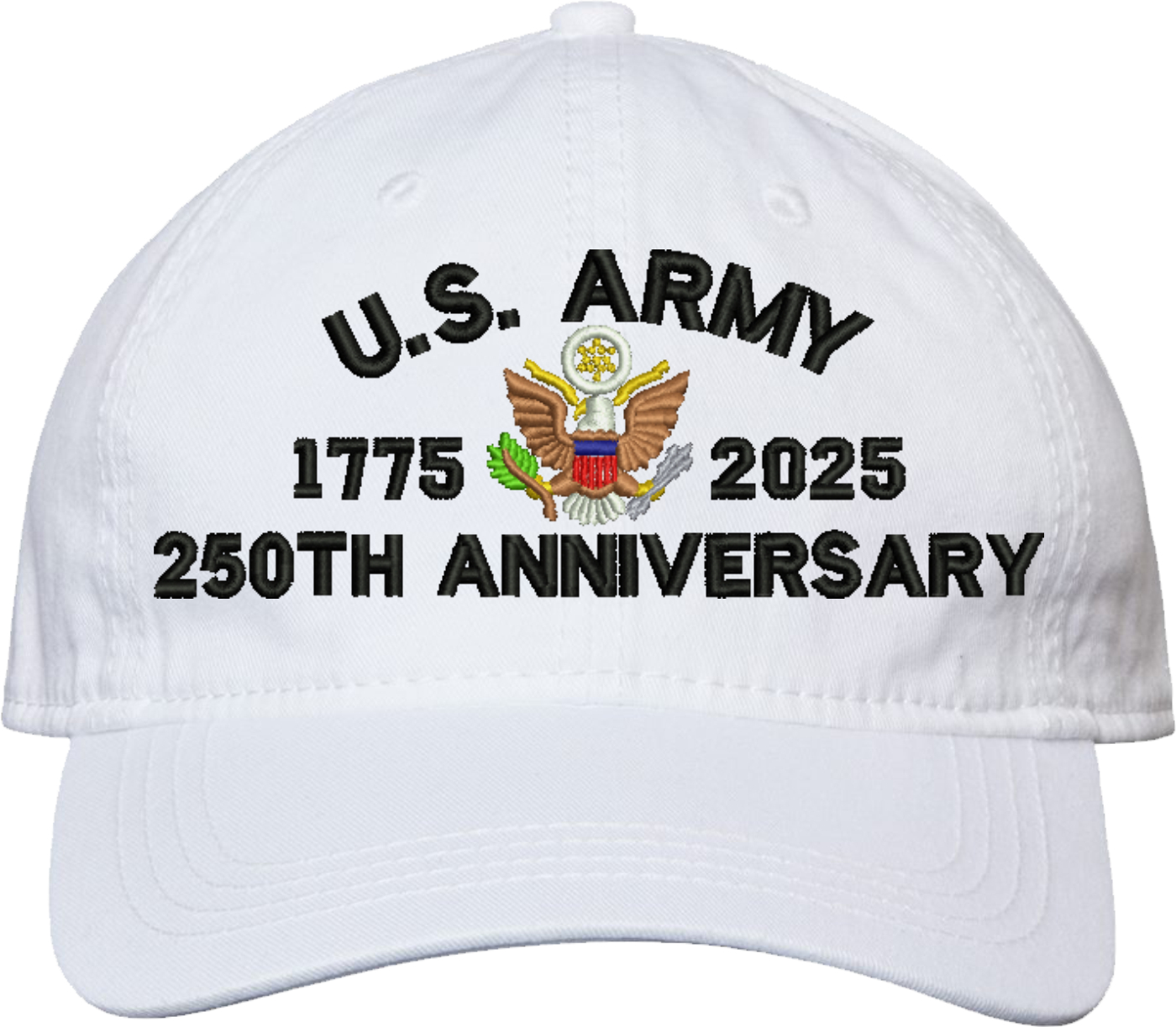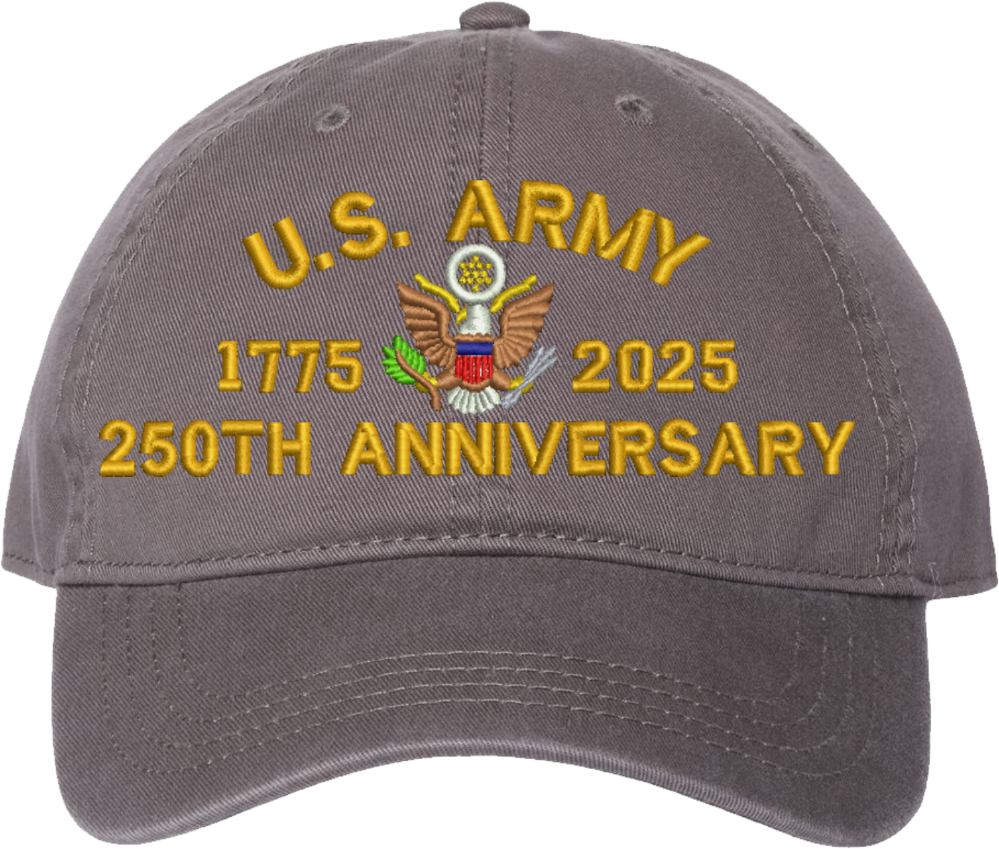 Show your Army pride with this U.S. Army 250th Anniversary Unstructured Dad Cap from MilitaryBest. Crafted from 100% washed chino twill cotton, this six-panel, low-profile cap offers a relaxed and comfortable fit. Featuring high-quality embroidery done in our Scottsboro, Alabama facility, this cap is designed with a pre-curved visor and an adjustable tri-glide buckle closure for a perfect fit. Whether for everyday wear or as a meaningful gift, this cap is a great way to honor your own or a loved one's service.If a ribbon stack is chosen as the insignia, side of insignia text can not be embroidered. For caps ordered with custom embroidered personalized text please allow an additional 3 to 5 days production time. All custom back text will be embroidered in ALL CAPITAL LETTERS. Caps with back text or eggs are non-returnable unless there is a material defect in the cap.