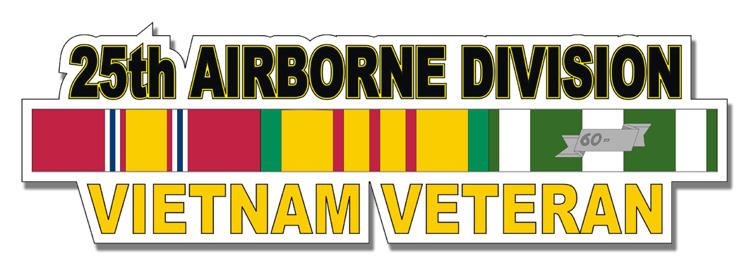 Select your desired size by clicking the arrow below then select the “Purchase Now” button.This U.S. Army 25th Airborne Division Vietnam Veteran Window Strip Decal is a MilitaryBest Exclusive and was designed by one of our working partners. Made at our facilities in Scottsboro, Alabama, this Vietnam decal sticker is printed on high quality vinyl using solvent inks which will provide long lasting results. After printing, this U.S. Army 25th Airborne Division Vietnam Veteran Window Strip Decal is laminated and then die cut. Our Military decals have no excess plastic corners as seen on Imported cheaper versions of Military Stickers. You won’t find higher quality decals from any dealer.