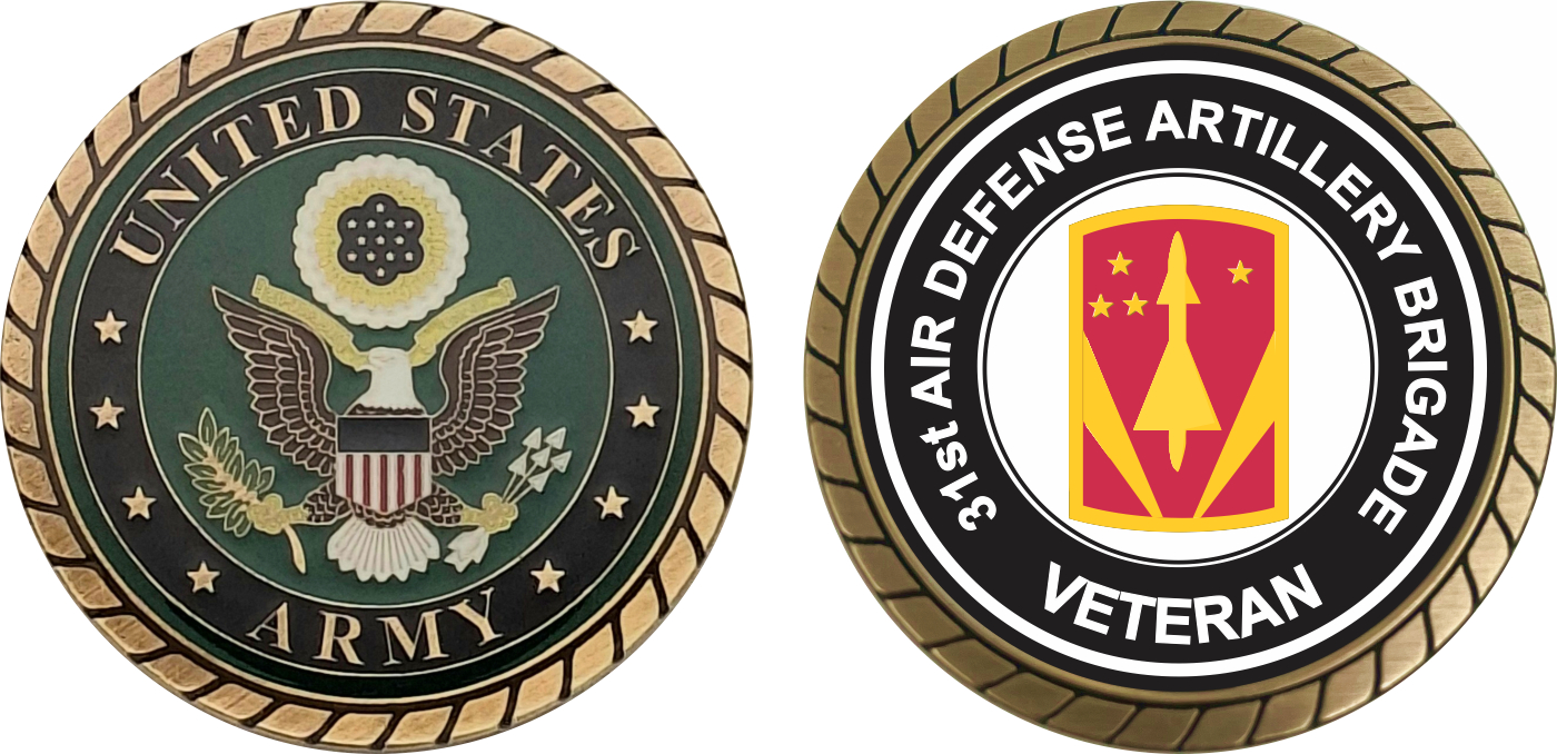 This 1 3/4” U.S. Army 31st Air Artillery Brigade Veteran Challenge Coin is proudly offered by MilitaryBest. This Officially Licensed Army coin has beautiful enamel finish on one side and an organized crisp clean U.S. Army 31st Air Artillery Brigade Veteran design on the opposite side.