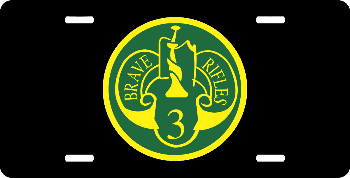 This U.S. Army 3rd Armored Cavalry License Plate is made from heavy gauge aluminum and has a baked enamel finish to last for many years of use. Each plate measures 5 15/16" x 11 15/16". This license plate would make a wonderful addition to your collection or a great gift.