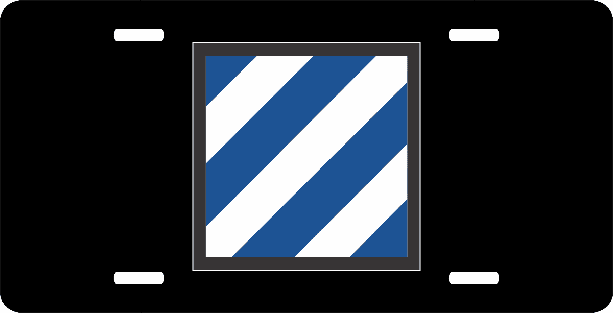 This U.S. Army 3rd Infantry Division License Plate is made from heavy gauge aluminum and has a baked enamel finish to last for many years of use. Each plate measures 5 15/16" x 11 15/16". This license plate would make a wonderful addition to your collection or a great gift.