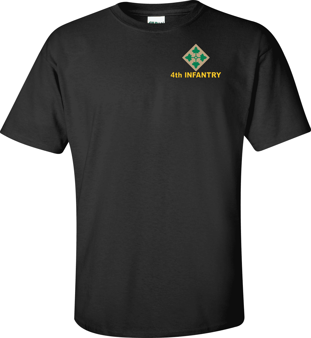 MilitaryBest is proud to offer this fine U.S. Army 4th Infantry Division T-shirt. This shirt is available with several options for the image on the front of the shirt, as well as, offering a full-sized Insignia on the back. Each U.S. Army 4th Infantry Division T-shirt is proudly printed in the USA.Unless there is a defect in workmanship or material, these shirts are unreturnable.