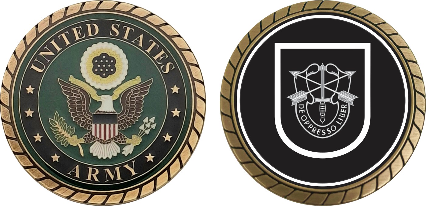 This 1 3/4” U.S. Army 5th Special Forces Group Group Challenge Coin is proudly offered by Militarybest. This Officially Licensed Army coin has beautiful enamel finish on one side and an organized crisp clean design on the opposite side.