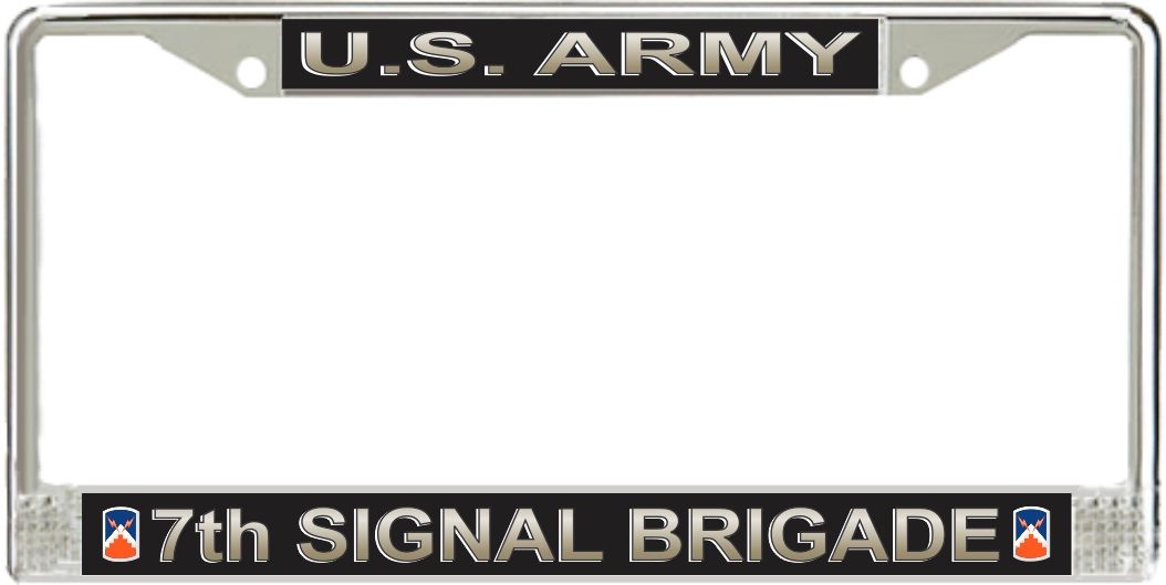 U.S. Army 7th Signal Brigade License Plate FrameThis U.S. Army 7th Signal Brigade License Plate Frame is made from the highest quality finished metal alloy. Each one is designed to provide years of use. Each is designed and produced in our facility in Scottsboro, Alabama.