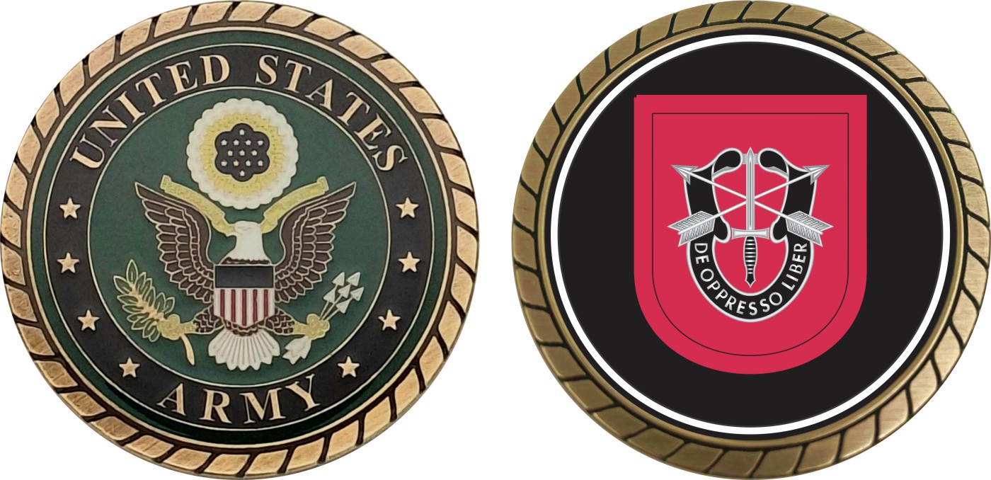 This 1 3/4” U.S. Army 7th Special Forces Group Flash Challenge Coin is proudly offered by Militarybest. This Officially Licensed Army coin has beautiful enamel finish on one side and an organized crisp clean design on the opposite side.