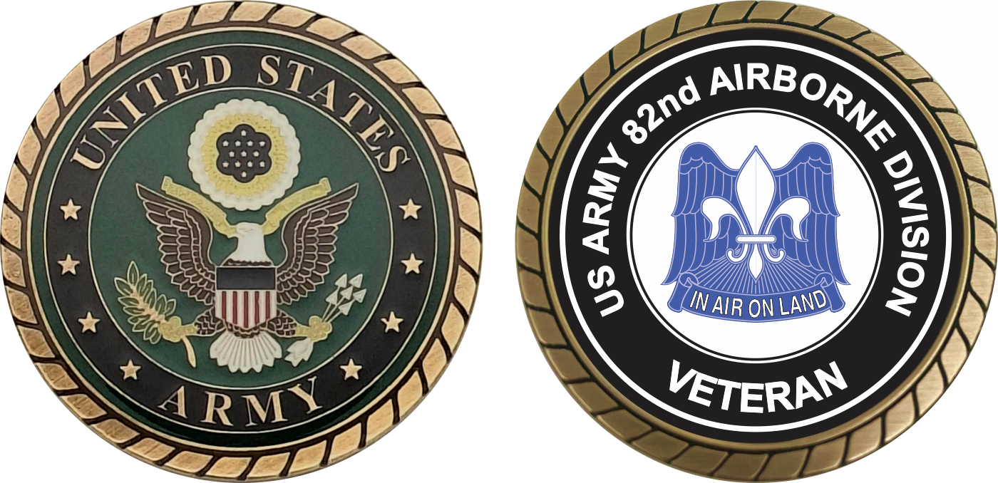 This 1 3/4” U.S. Army 82nd Airborne Unit Crest Veteran Challenge Coin is proudly offered by Militarybest. This Officially Licensed Army coin has beautiful enamel finish on one side and an organized crisp clean 82nd Airborne Unit Crest Veteran design on the opposite side.