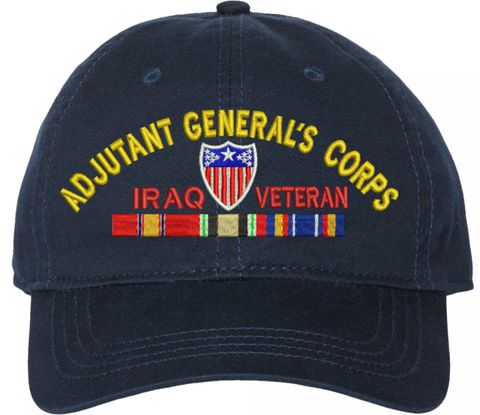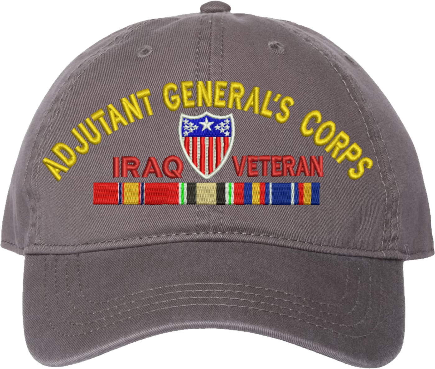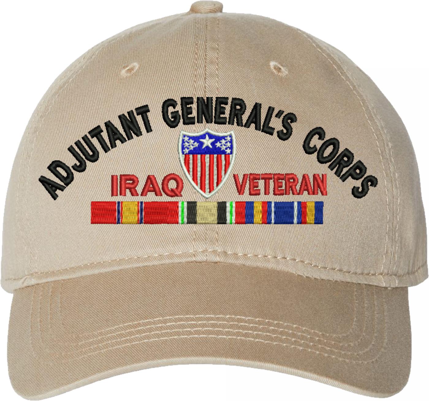 Show your Army pride with this U.S. Army Adjutant General's Corps Iraq Veteran Unstructured Dad Cap from MilitaryBest. Crafted from 100% washed chino twill cotton, this six-panel, low-profile cap offers a relaxed and comfortable fit. Featuring high-quality embroidery done in our Scottsboro, Alabama facility, this cap is designed with a pre-curved visor and an adjustable tri-glide buckle closure for a perfect fit. Whether for everyday wear or as a meaningful gift, this cap is a great way to honor your own or a loved one's service.For caps ordered with custom embroidered personalized text please allow an additional 3 to 5 days production time. All custom back text will be embroidered in ALL CAPITAL LETTERS. Caps with back text or eggs are non-returnable unless there is a material defect in the cap.