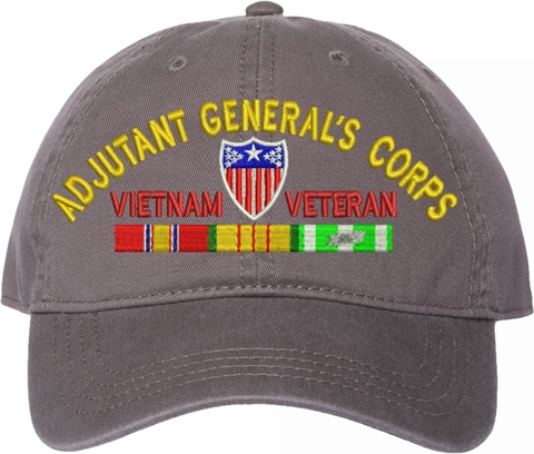 Show your Army pride with this U.S. Army Adjutant General's Corps Vietnam Veteran Unstructured Dad Cap from MilitaryBest. Crafted from 100% washed chino twill cotton, this six-panel, low-profile cap offers a relaxed and comfortable fit. Featuring high-quality embroidery done in our Scottsboro, Alabama facility, this cap is designed with a pre-curved visor and an adjustable tri-glide buckle closure for a perfect fit. Whether for everyday wear or as a meaningful gift, this cap is a great way to honor your own or a loved one's service.For caps ordered with custom embroidered personalized text please allow an additional 3 to 5 days production time. All custom back text will be embroidered in ALL CAPITAL LETTERS. Caps with back text or eggs are non-returnable unless there is a material defect in the cap.