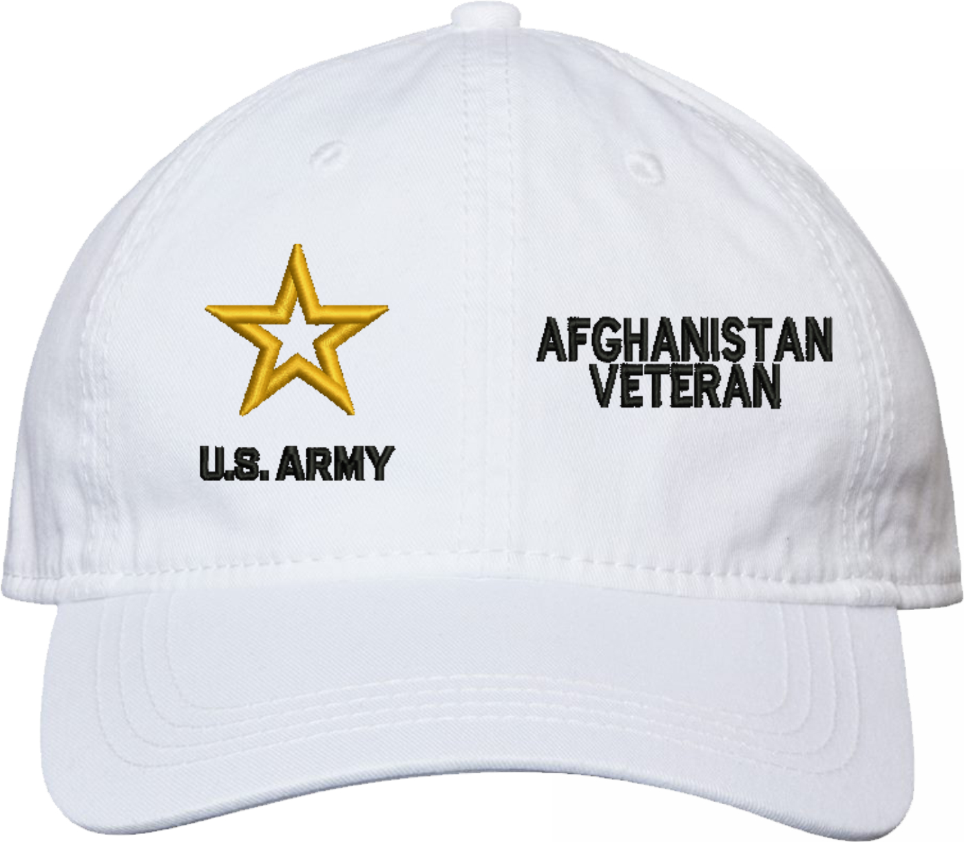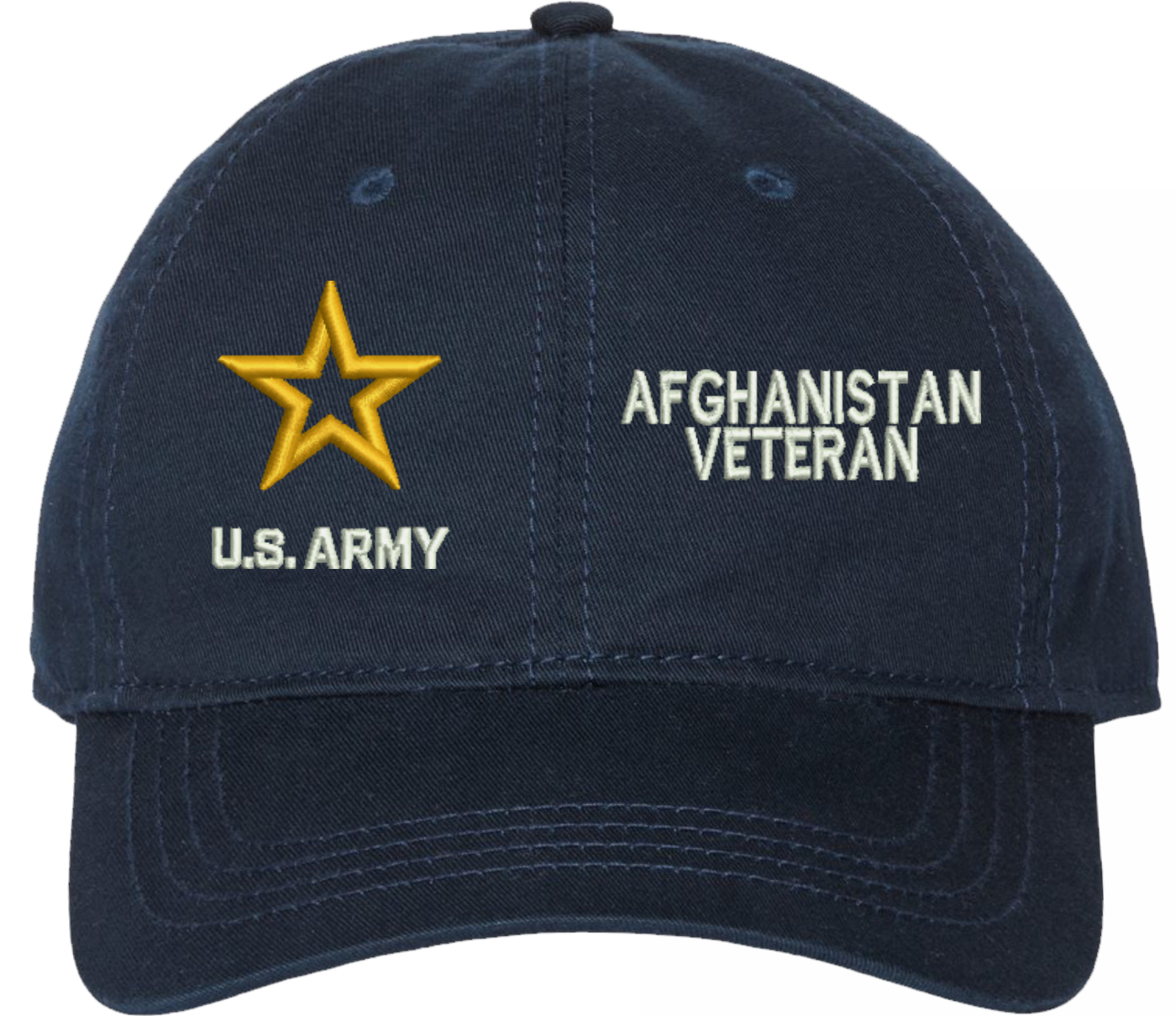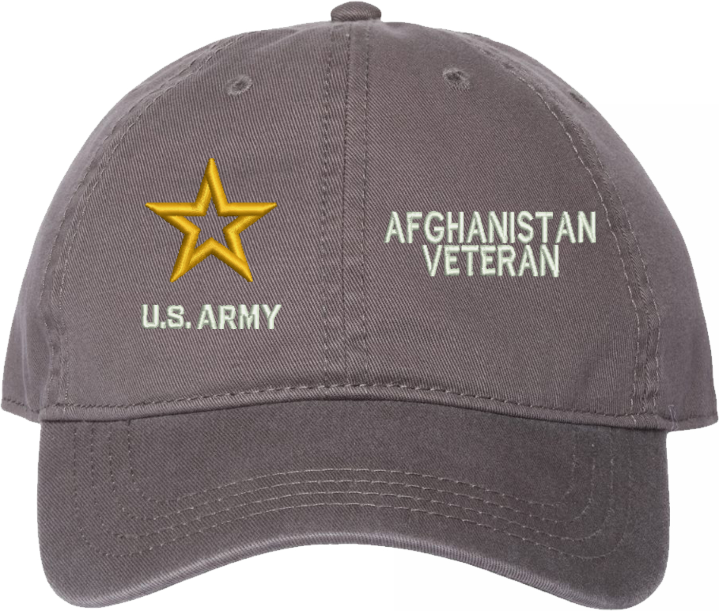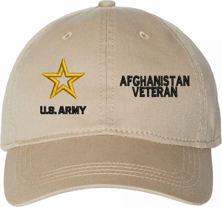 Show your Army pride with this U.S. Army Afghanistan Veteran Unstructured Dad Cap from MilitaryBest. Crafted from 100% washed chino twill cotton, this six-panel, low-profile cap offers a relaxed and comfortable fit. Featuring high-quality embroidery done in our Scottsboro, Alabama facility, this cap is designed with a pre-curved visor and an adjustable tri-glide buckle closure for a perfect fit. Whether for everyday wear or as a meaningful gift, this cap is a great way to honor your own or a loved one's service.For caps ordered with custom embroidered personalized text please allow an additional 3 to 5 days production time. All custom back text will be embroidered in ALL CAPITAL LETTERS. Caps with back text or eggs are non-returnable unless there is a material defect in the cap.