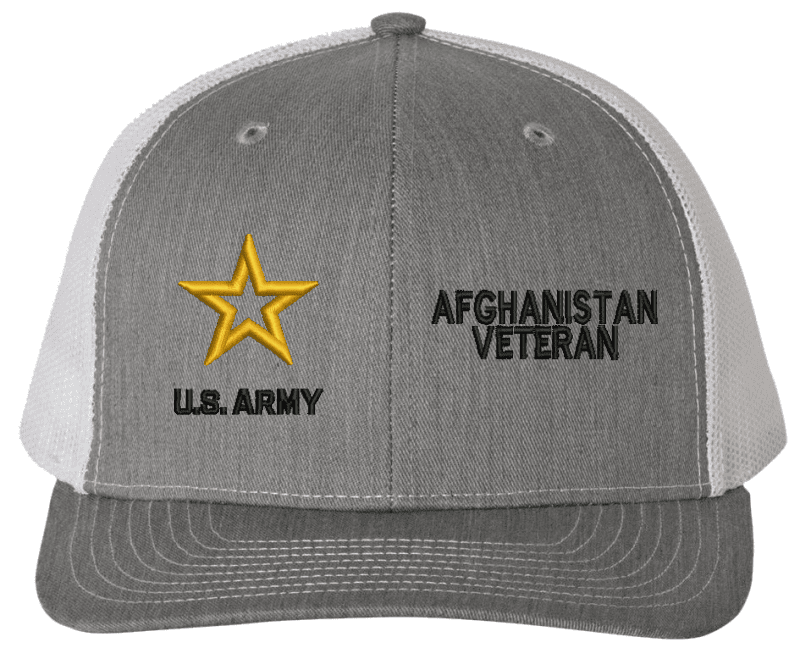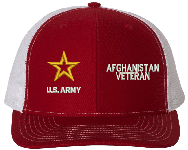 MilitaryBest is proud to offer this U.S. Army Afghanistan Veteran Mesh Back Cap. The design of this U.S. Army Cap is crisp, clean, and sure to be loved by people of all ages! Select above from our many cap colors. This U.S. Army Afghanistan Veteran Mesh Back Cap is crafted by our skilled embroidery technicians at our facilities in Scottsboro, AL. As with all MilitaryBest items, your satisfaction is guaranteed!Caps ordered with custom embroidered personalized back text require an additional 2 to 3 days production time. All custom back text will be embroidered in ALL CAPITAL LETTERS. Caps personalized with back text are non-returnable unless there is a material defect in the cap.