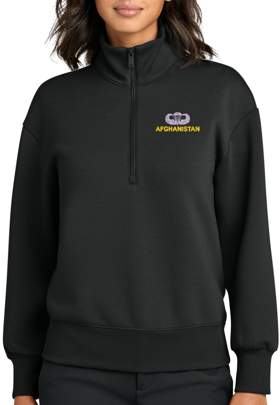 MilitaryBest is proud to offer this U.S. Army Afghanistan with Jump Wings Women's Soft Spacer Quarter-Zip. This quarter-zip is embroidered by our MilitaryBest team in Northeast Alabama. These quarter-zips are made using spacer yarn to provide light insulation with a soft structure, they also fight odor and provide light UV ray protection.Care Instructions: Turn Garment Inside Out. Machine Wash Cold With Like Colors. Only Non-Chlorine Bleach, When Needed. Tumble Dry Low, Remove Promptly. Cool Iron, If Necessary. Do Not Use Fabric Softeners Or Dryer Sheets.
