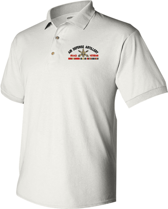 MilitaryBest is proud to offer this quality U.S. Army Air Defense Artillery Iraq Veteran Polo. Each Polo is available in either 100% Ringspun cotton pique or a 50/50 cotton/polyester blend. These quality Military Polos are proudly embroidered at our facilities in Scottsboro, AL. Support the Army MWR program by purchasing only from Licensed Vendors.