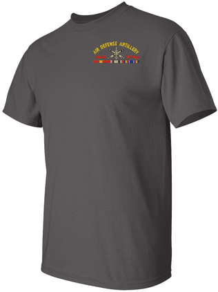 Note: Some of the Color Options pictured may not be available. Available Color Options are listed on the drop down menu above. Yellow colored text is embroidered in black on Khaki Tan and White shirts.MilitaryBest is proud to offer this U.S. Army Air Defense Artillery Iraq Veteran T-Shirt. These quality Military T-Shirts are proudly embroidered at our facilities in Scottsboro, AL. Support the Army MWR program by purchasing only from Licensed Vendors.