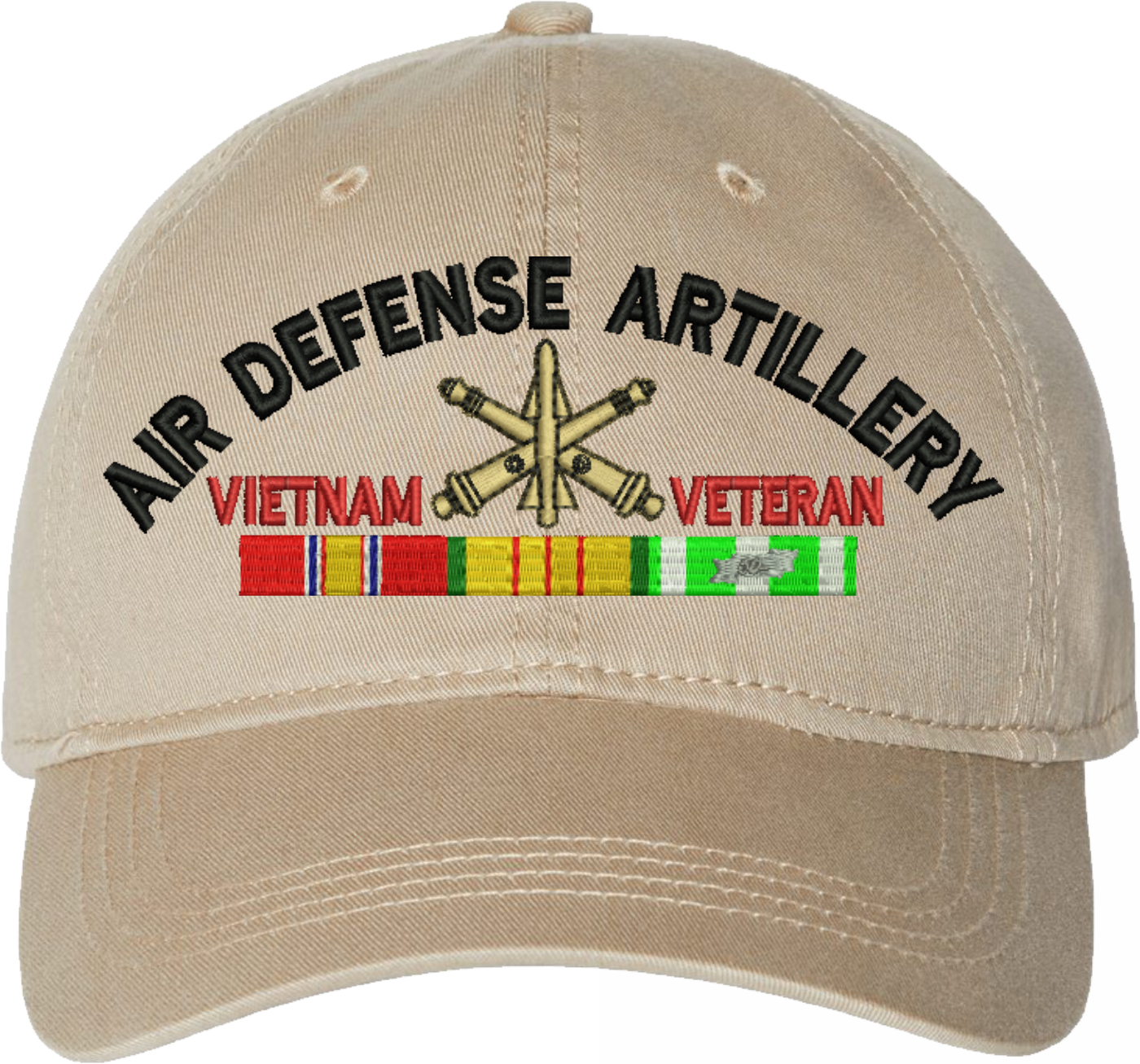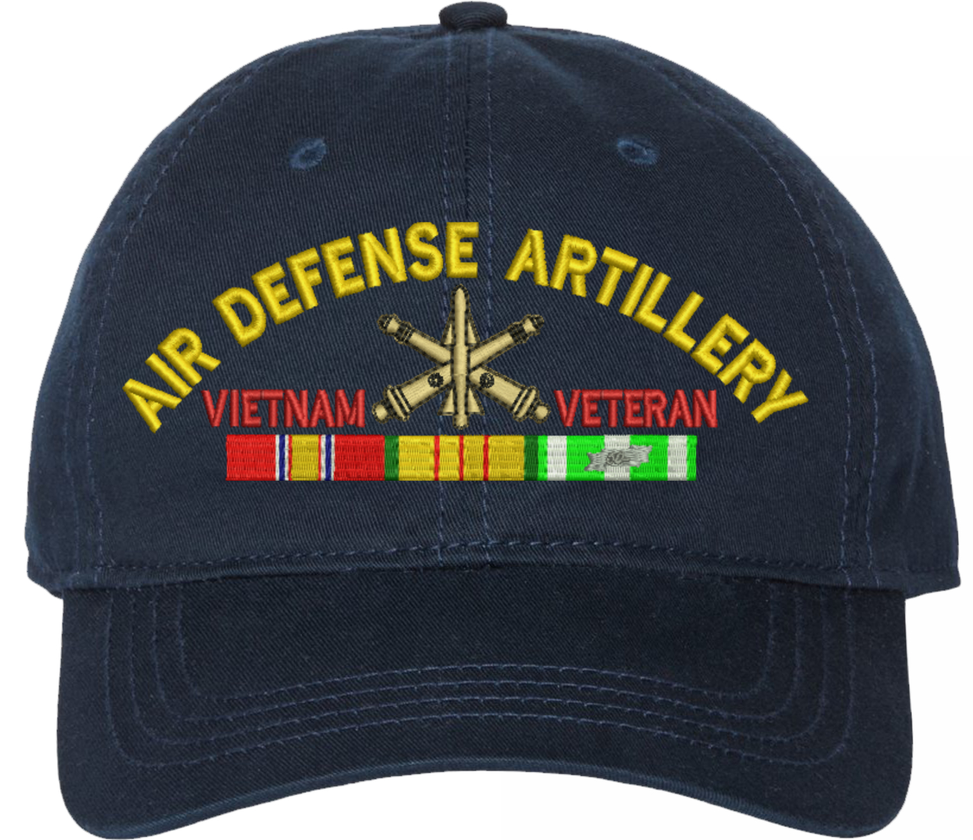 Show your Army pride with this U.S. Army Air Defense Artillery Vietnam Veteran Unstructured Dad Cap from MilitaryBest. Crafted from 100% washed chino twill cotton, this six-panel, low-profile cap offers a relaxed and comfortable fit. Featuring high-quality embroidery done in our Scottsboro, Alabama facility, this cap is designed with a pre-curved visor and an adjustable tri-glide buckle closure for a perfect fit. Whether for everyday wear or as a meaningful gift, this cap is a great way to honor your own or a loved one's service.For caps ordered with custom embroidered personalized text please allow an additional 3 to 5 days production time. All custom back text will be embroidered in ALL CAPITAL LETTERS. Caps with back text or eggs are non-returnable unless there is a material defect in the cap.