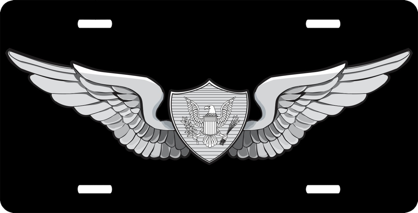 This U.S. Army Aircrew Wings Window License Plate is made from heavy gauge aluminum and has a baked enamel finish to last for many years of use. Each plate measures 5 15/16" x 11 15/16". This license plate would make a wonderful addition to your collection or a great gift.